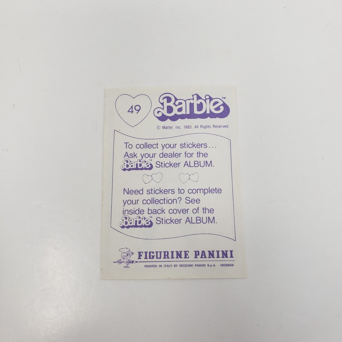 VINTAGE 1983 MATTEL FIGURINE PANINI BARBIE ALBUM STICKER NOS NEW OLD STOCK # 49