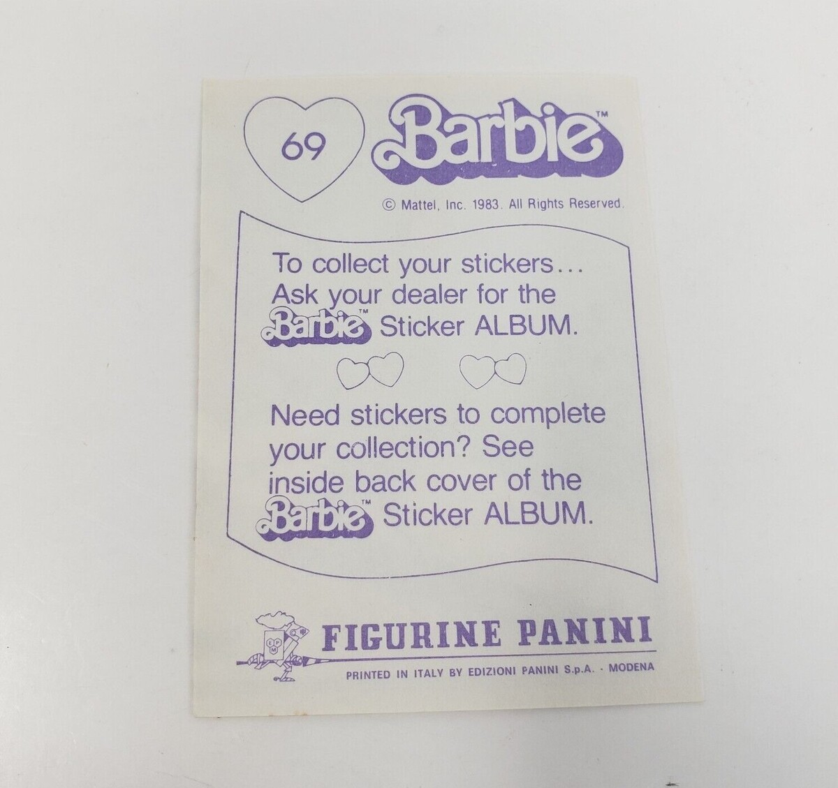 VINTAGE 1983 MATTEL FIGURINE PANINI BARBIE ALBUM STICKER NOS NEW OLD STOCK # 69