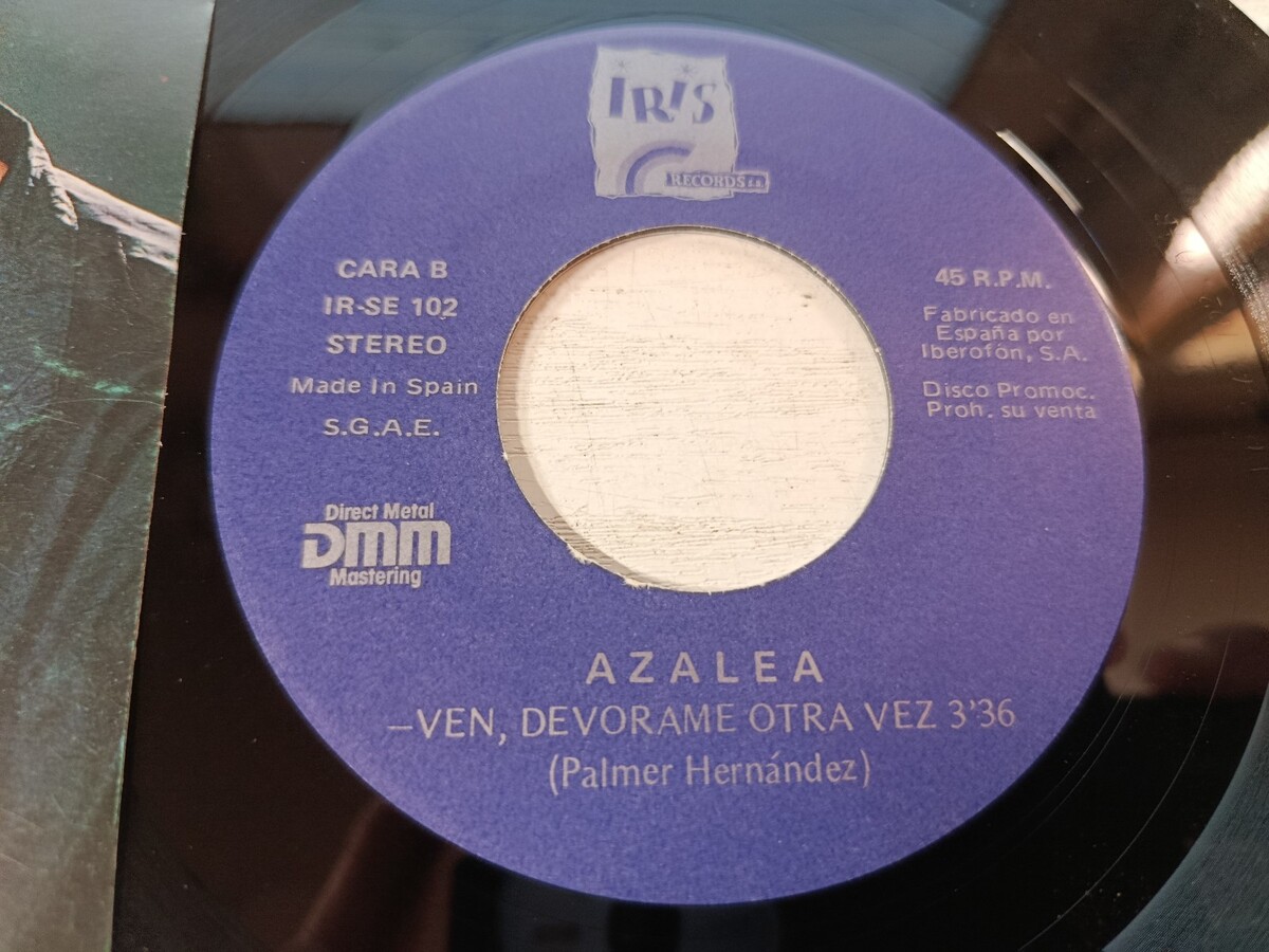 Azalea, Come devorame otra vez , Surrender, Single 7", 45 RPM, Latin Pop, Romantic ballad, vinyl Spain, 80s, DMM Mastering, Promotional album, Pepe Loeches, Manuelde la Calva, Iris Records