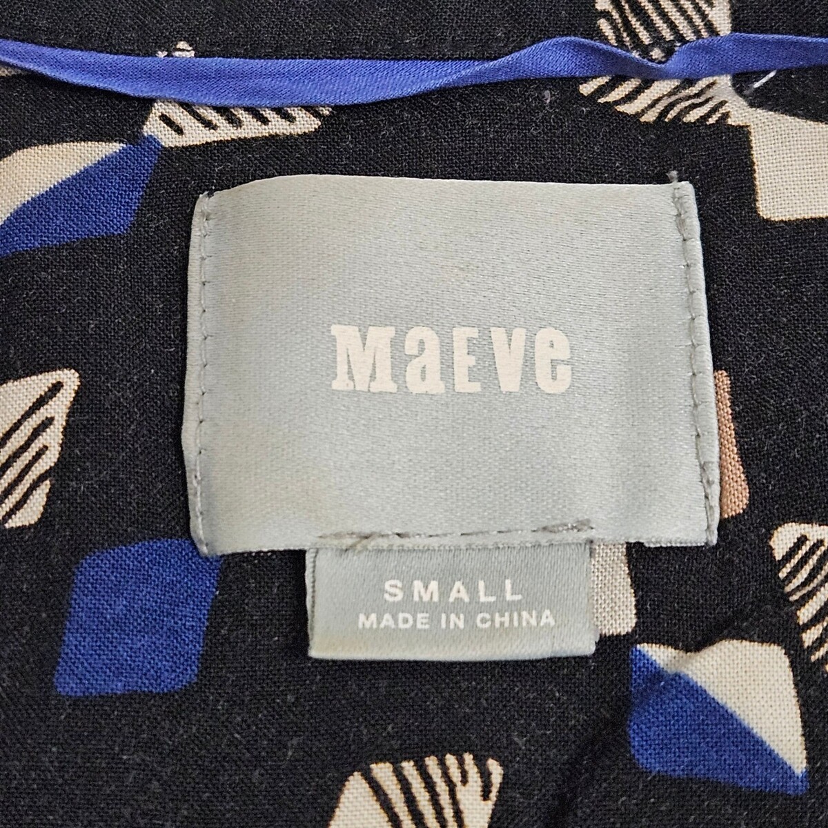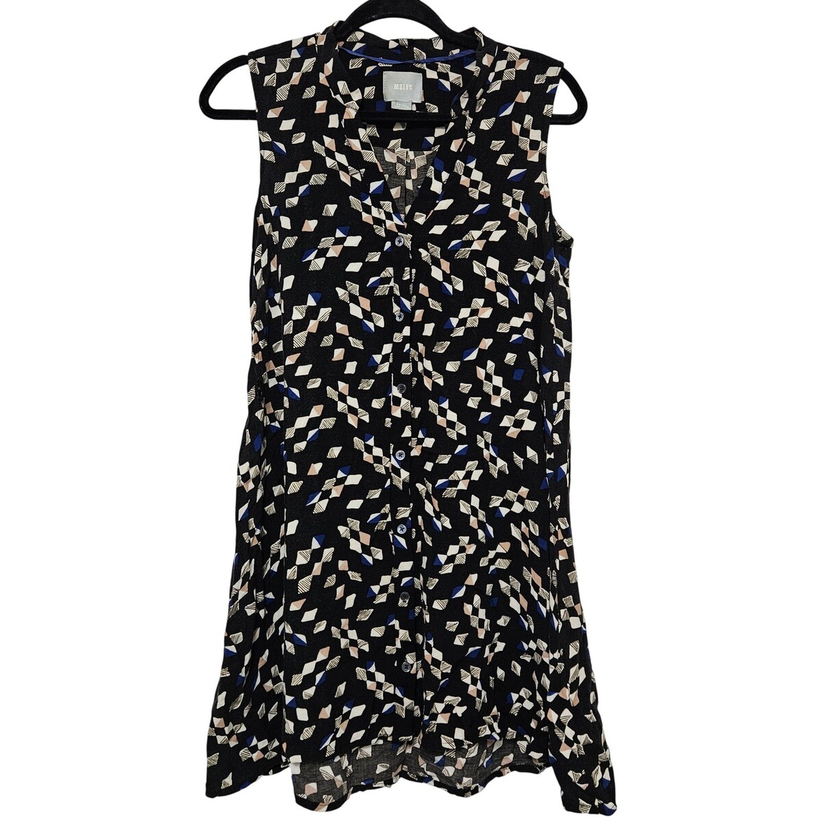 Maeve Art Girl Indie Abstract Drapey Shirt Dress Black White Rayon Sleeveless Sm