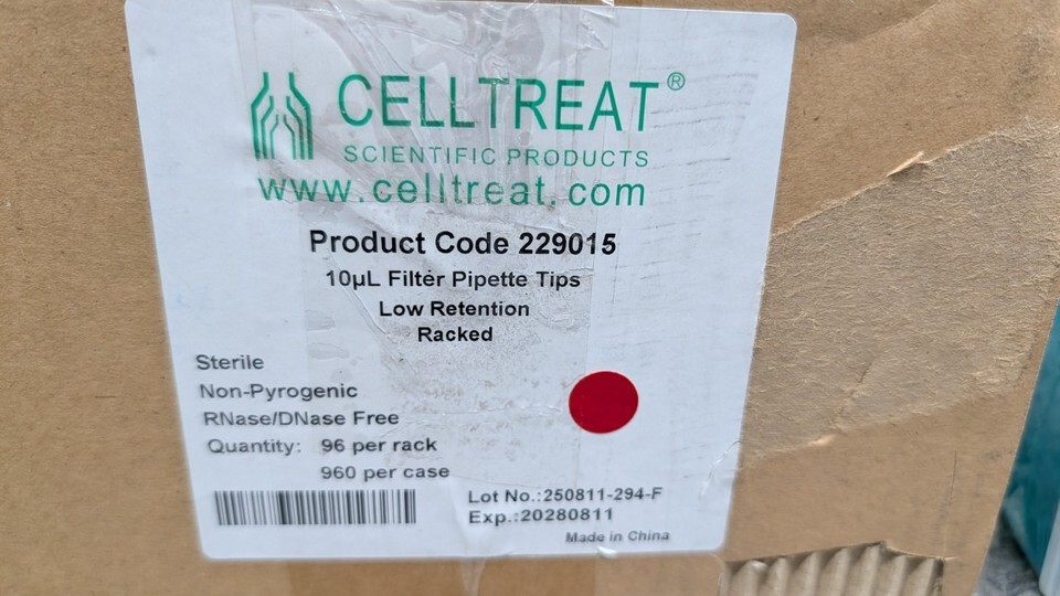 Celltreat 10µL Low Retention Filtered Tips 229015 (10 sealed racks, 96/Rack)