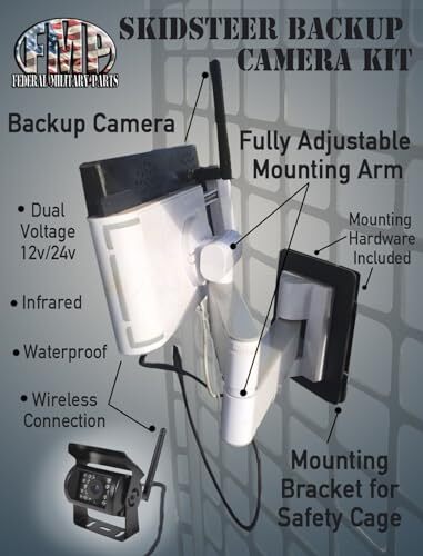Federal Military Parts- Skid Steer Backup Camera + Swivel Mounting Arm + Custom