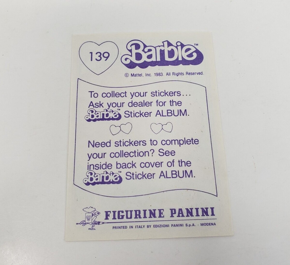VINTAGE 1983 MATTEL FIGURINE PANINI BARBIE ALBUM STICKER NOS NEW OLD STOCK # 139