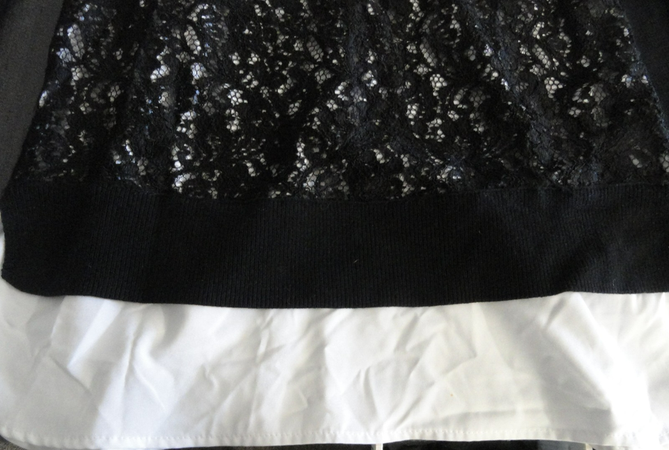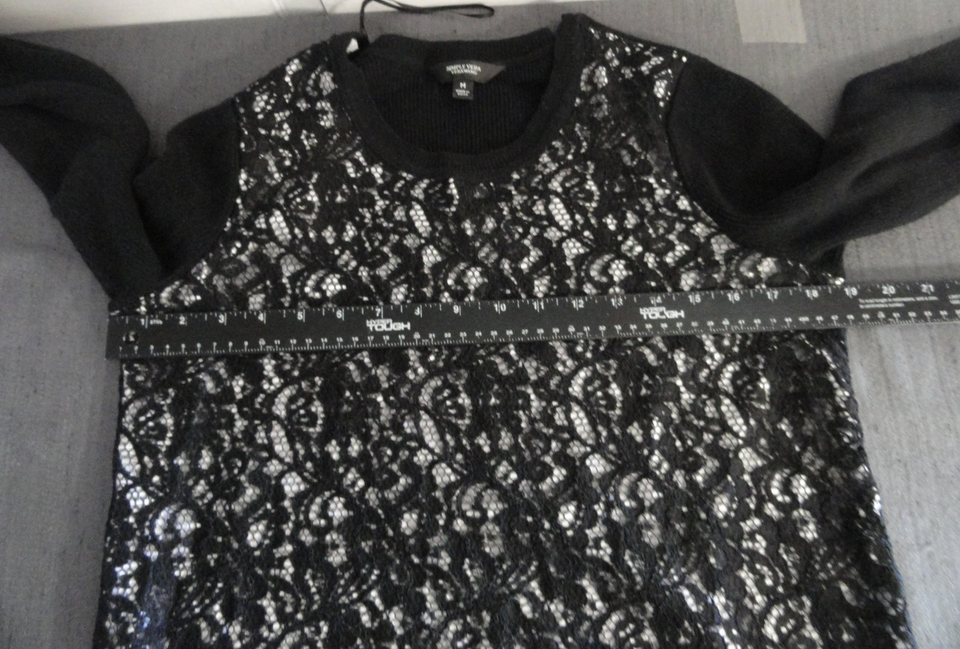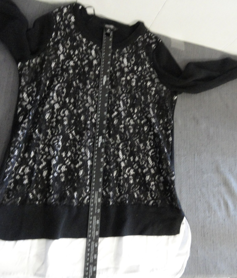 EUC DESIGNER SIMPLY VERA VERA WANG SHINY LS BLACK & WHITE BLOUSE SIZE MEDIUM