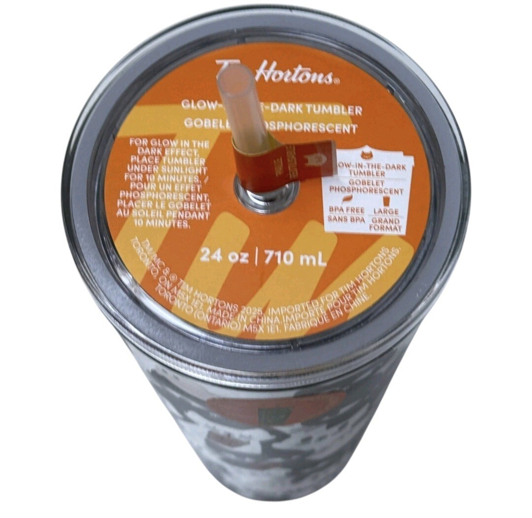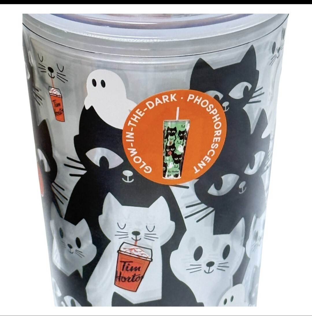 New Tim Hortons Tumbler Halloween Black Cats Glow in Dark 24 oz 2025 Limited Ed