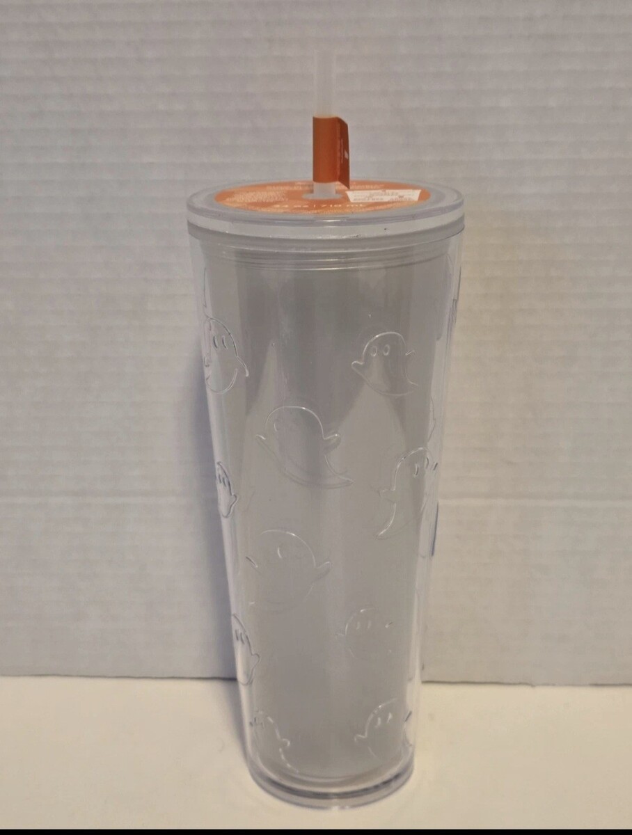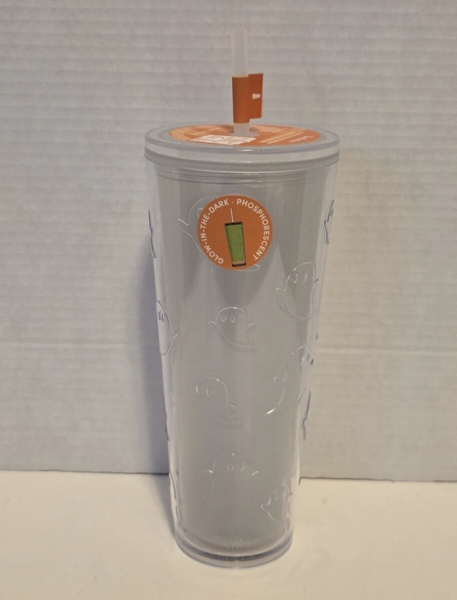 NEW 2025 Tim Hortons Halloween 24oz Plastic Ghost Straw Tumbler Glow-In-The Dark