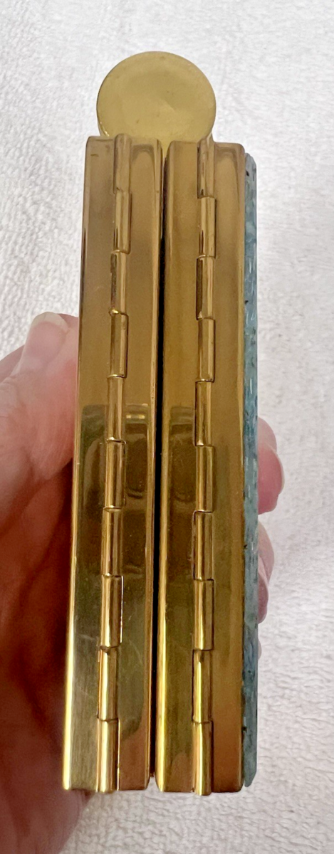 NOS Vintage Compact Purse w Lipstick Blue Silver Purple Glittery Top 2 Sided Box