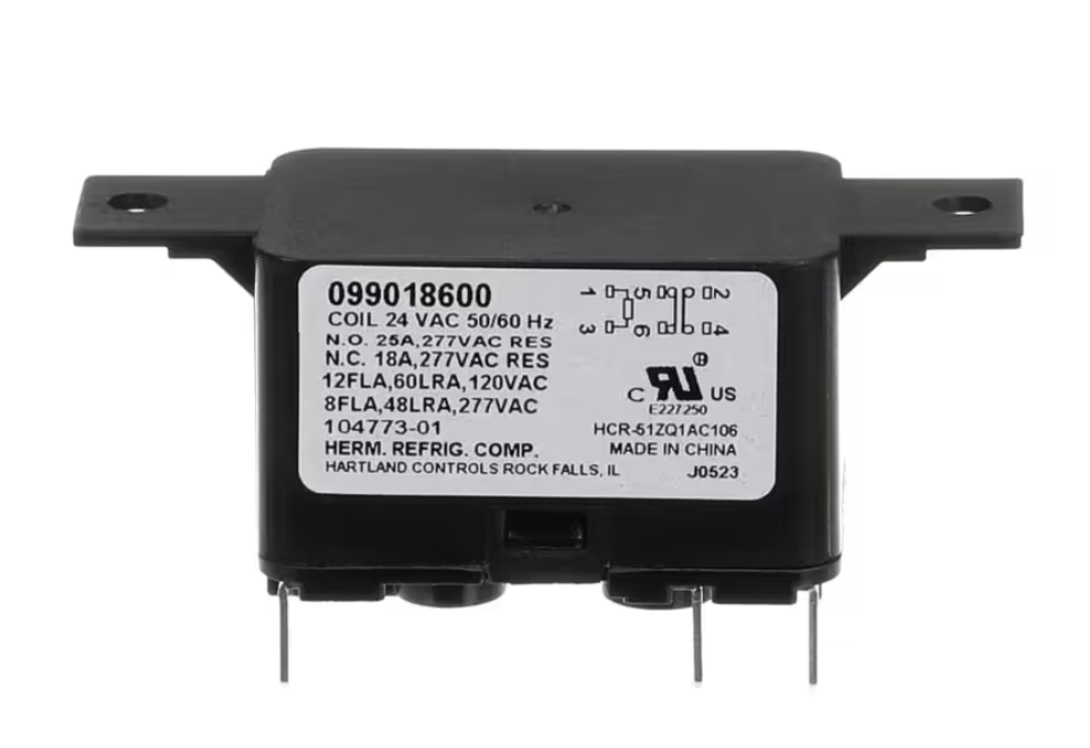Lennox 099018600, 104773-01 Fan Relay is a genuine OEM electrical control component designed to manage fan operation in HVAC systems. Equipped with a 24V coil (50/60Hz), this relay ensures precise switching and reliable control of fan circuits, supporting efficient system performance. Built to Lennox specifications, it delivers durability, consistent operation, and exact compatibility.