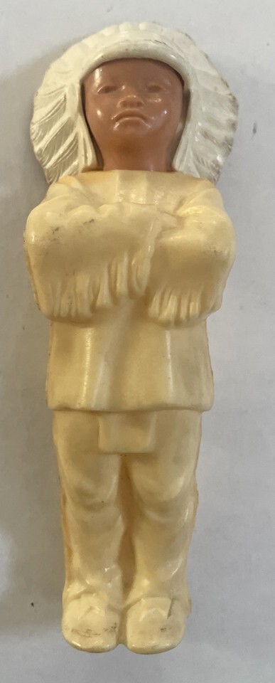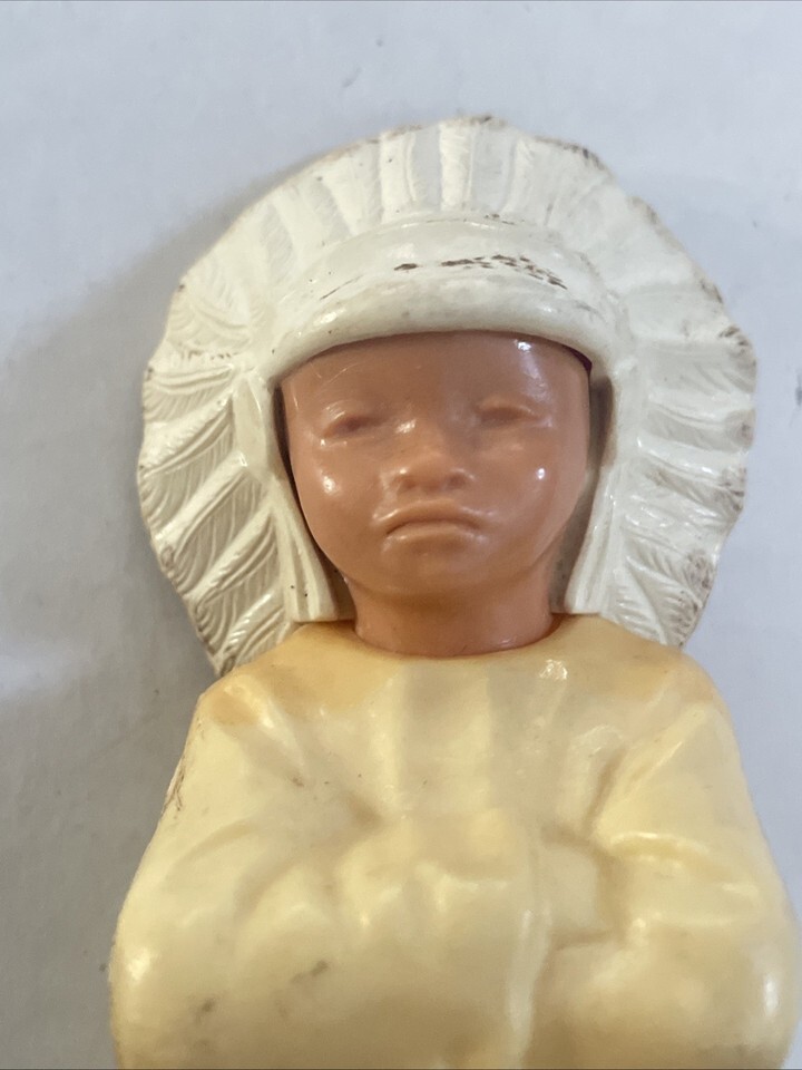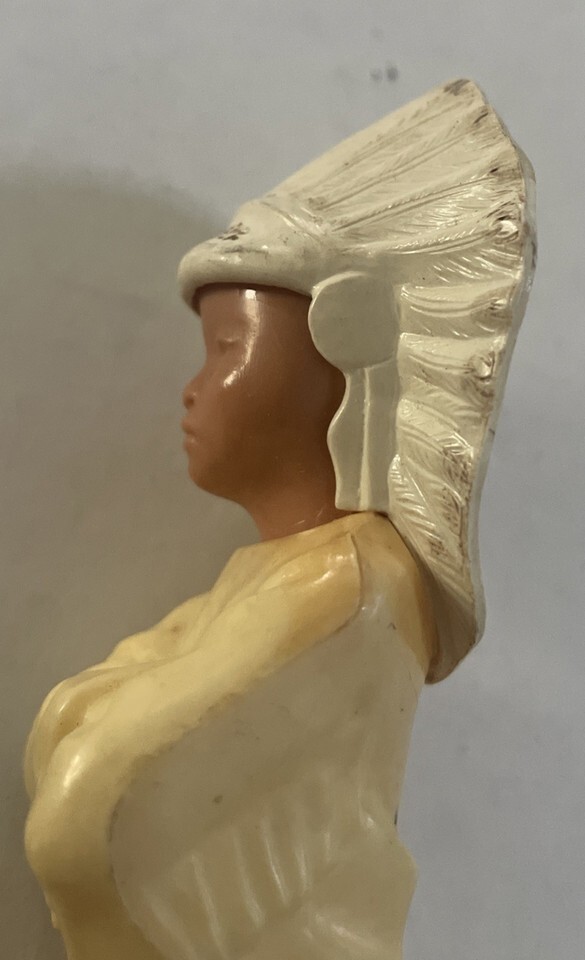 VINTAGE 1950s HARD PLASTIC CELLULOID Native American INDIAN CHIEF FIGURINE 5.5”