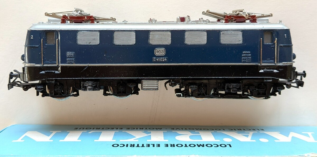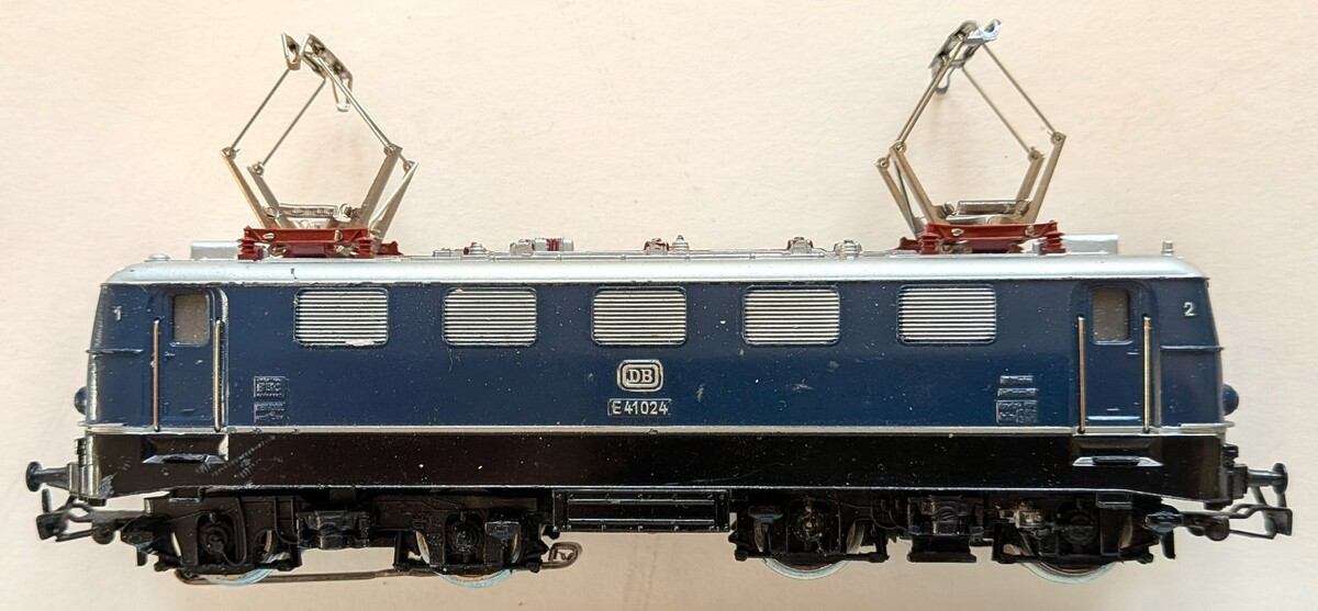 Marklin Marklin H0 3034 E41 electric loco lettered as Deutsche Bahn E41024, likely from the first series produced until 1968. Some minor scratching in a good box with on teat on the right back (where they tend to split). Freshly oiled and tested, work as she should. Very good pickup show, not worn. In original box, but no manual.