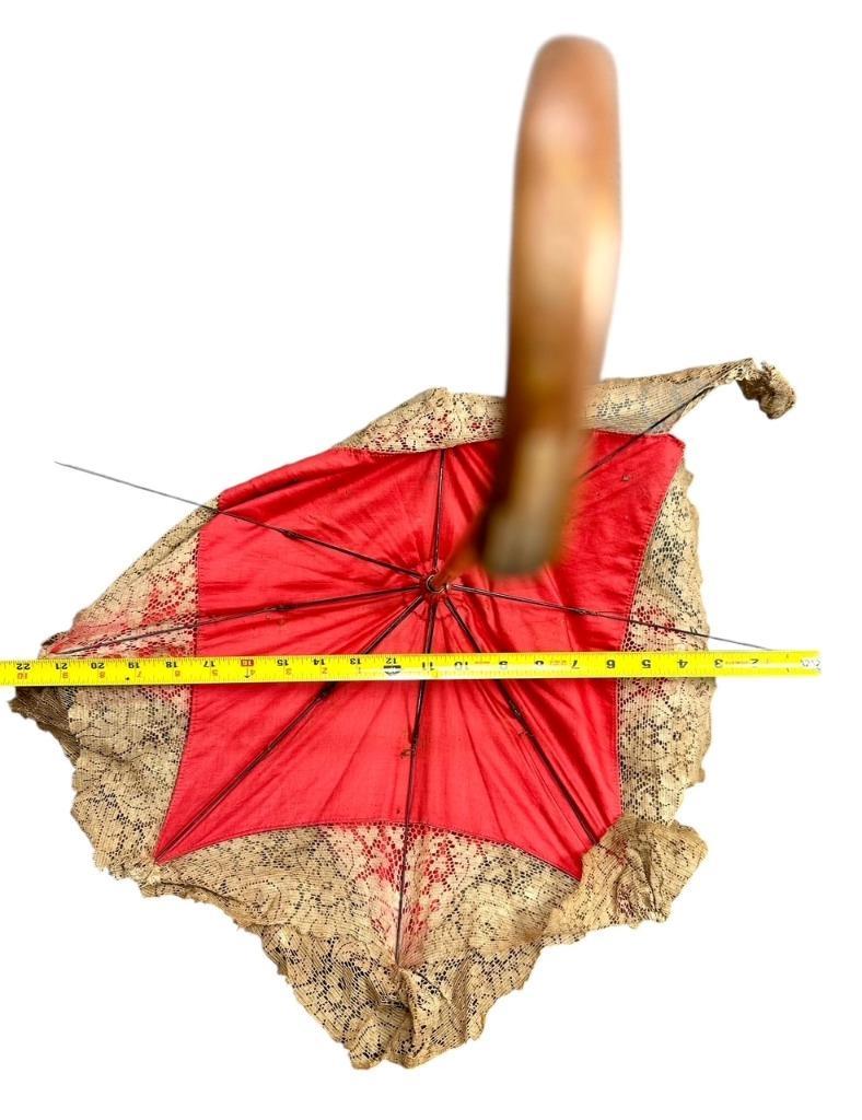 Antique Victorian Ladies Umbrella Parasol Curved Handle Lace Trim Circa 1880s