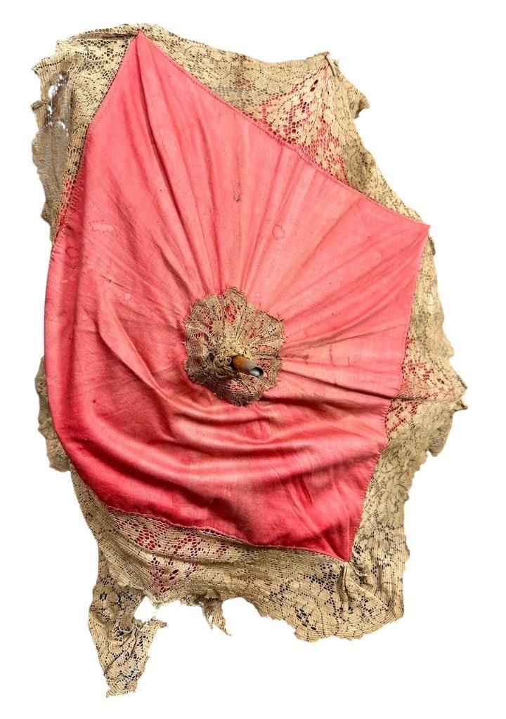 Antique Victorian Ladies Umbrella Parasol Curved Handle Lace Trim