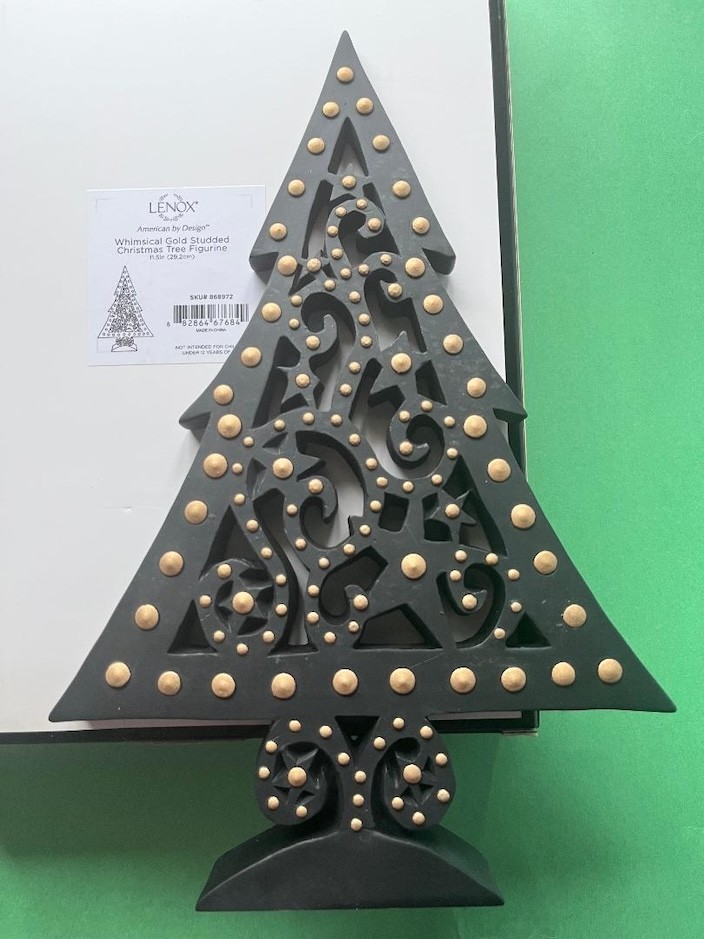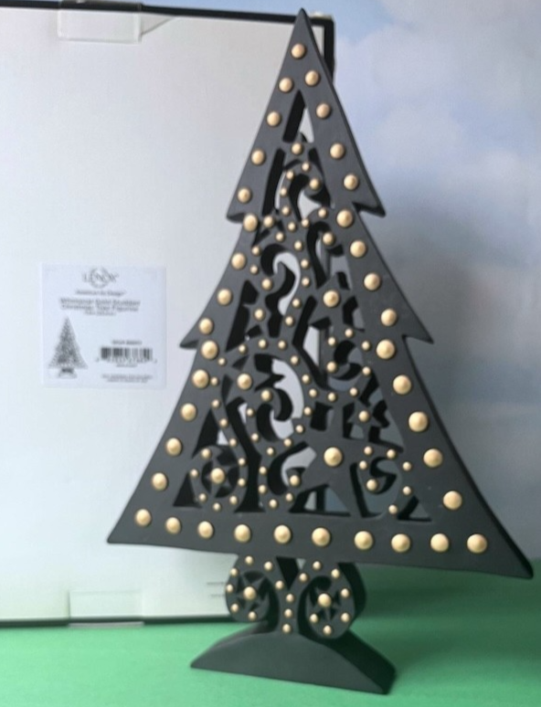 Lenox Whimsical Gold Studded Christmas Tree Figurine 11.5 Black Modern Decor New