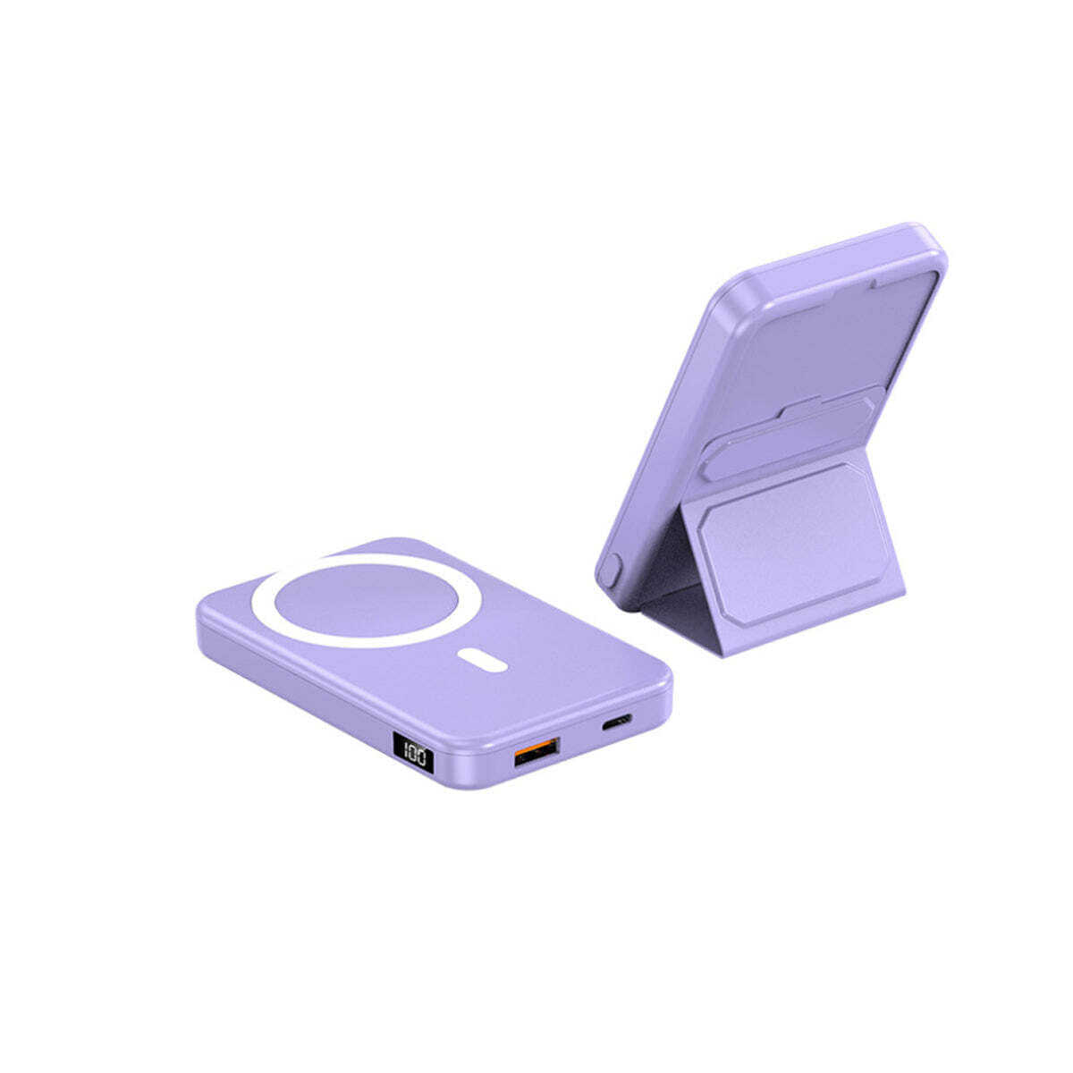 Stand O Matic Fast Wireless Charger And Multi Stand. A built-in magnetic charger and a magnetic stand that folds and disappears make it a breeze to charge and carry on the conversation hands-free. This fast charger can charge your Apple phone 100%, which can come in handy when you are in the middle of a call with low power. The magnetic charger clings to the phone for Apple models 12 and above and can charge any Android phone that is Qi-capable as well with a cable if it does not have magnetic support. It is easy to carry and recharge hundreds of times, making it a useful tool for any smartphone owner. It comes in multiple colors. Detail:Fast charging can charge your phone 100% in under an hour.Support Magnetic wireless charging on iPhone 12 and above. Supports wireless charging without magnetic on iPhone 8 and above. Supports wireless charging on any phone with wireless or a Qi charging support. Built-in Foldable flat magnetic stand that opens and closes for easy setup.Additional USB port for external charging of 2nd device using a cable.Can also charge iPad and tablets using a cable with the USB port.LED display shows how much power is left.Included in the Box: Charger, Cable, and manual.