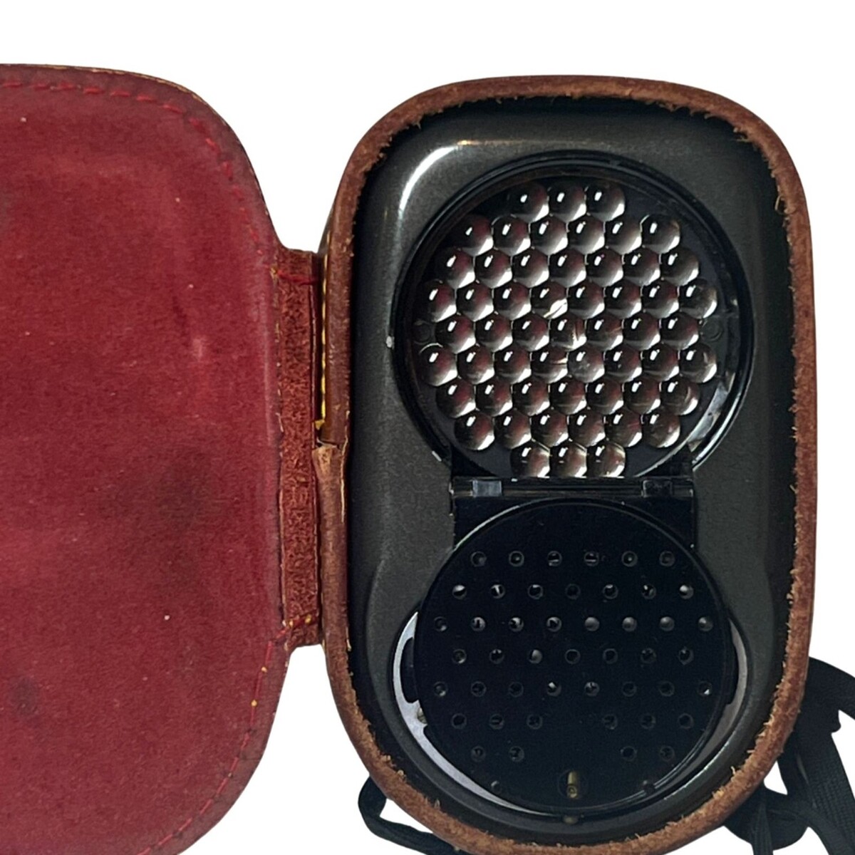 Shows cosmetic wear consistent with age, including surface marks and wear to the leather case. Functionality and accuracy have not been tested; sold as a vintage collectible.