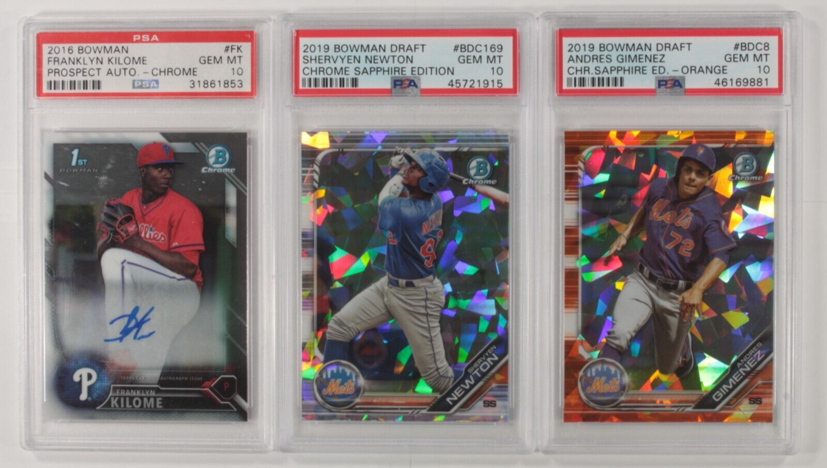 Lot Of 3 PSA 10 Graded Bowman Draft/Prospect Gimenez, Newton, Kilome Cards