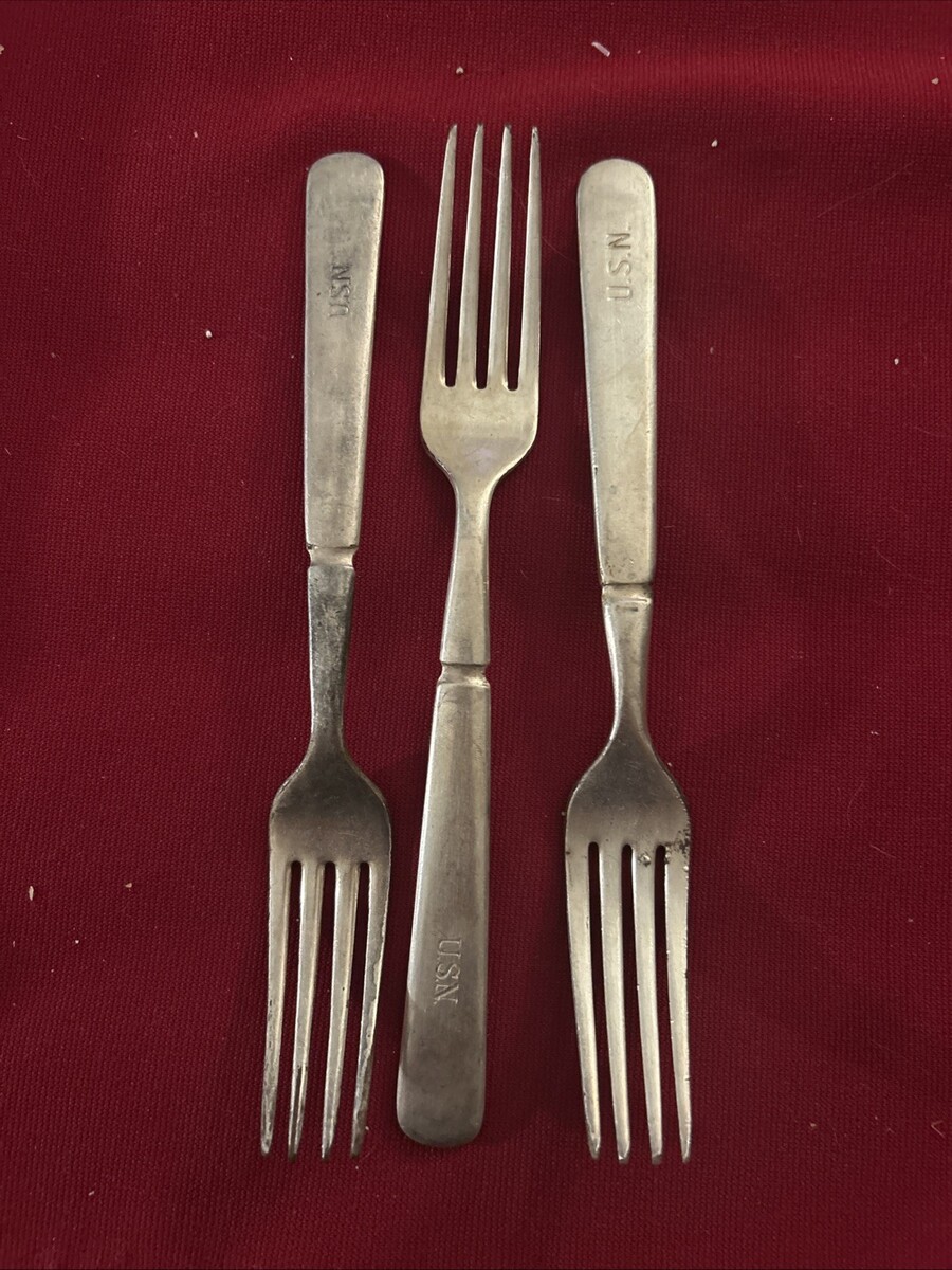 3 WWII Era US Navy issue Silver Plate Forks and similar items