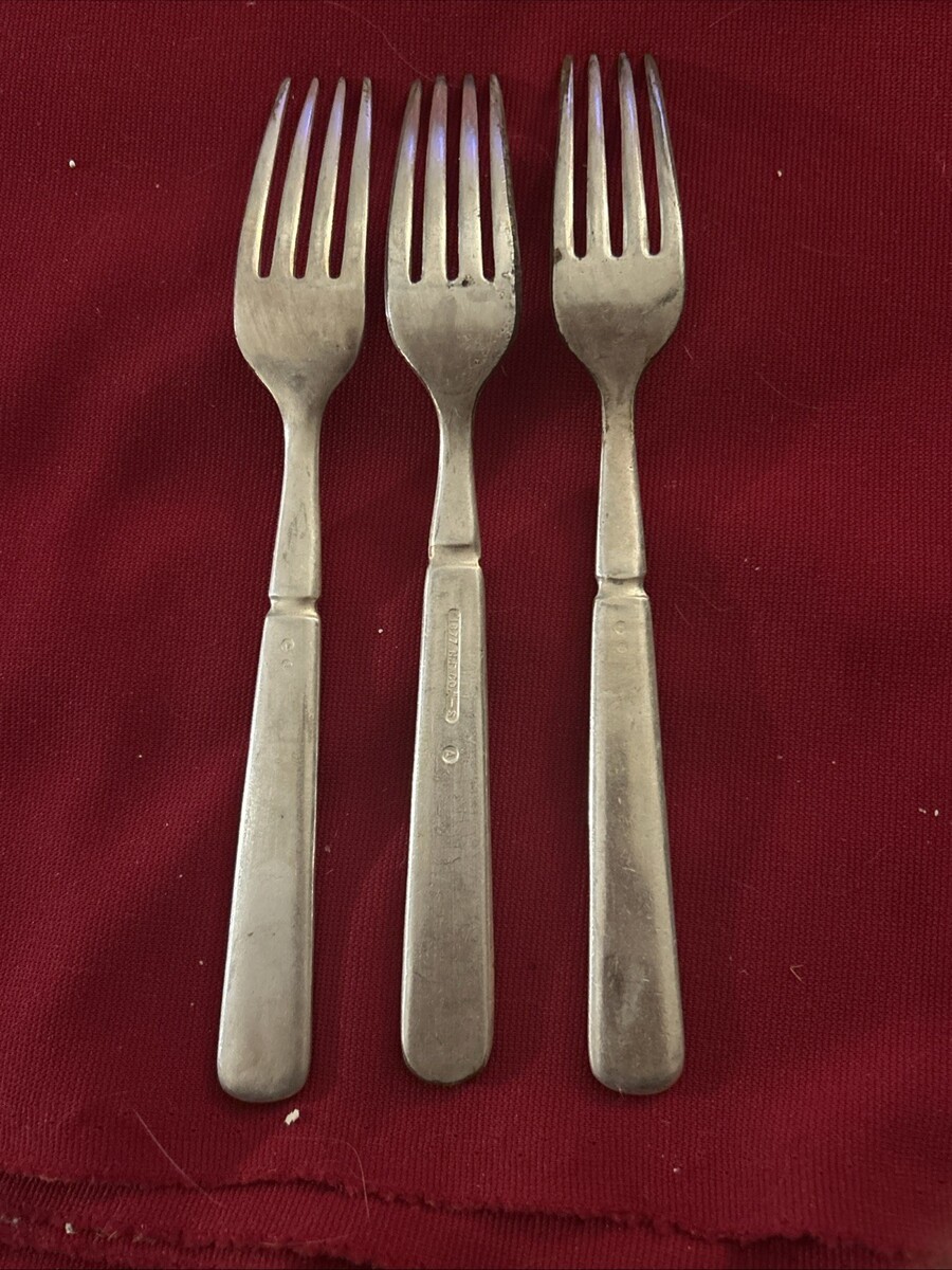 3 WWII Era US Navy issue Silver Plate Forks 7.75”