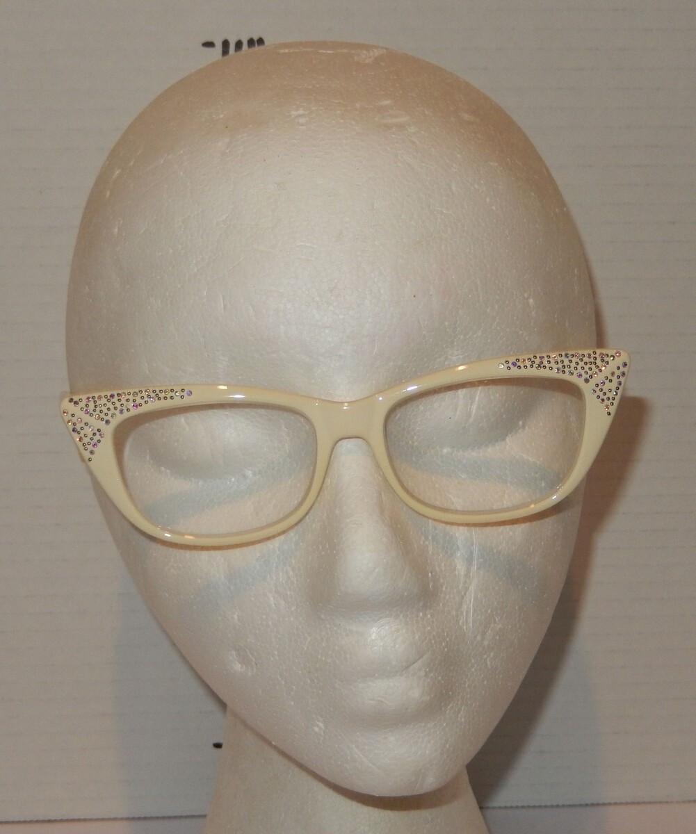 Up for sale is an Foster Grant Women?s Cat Eye Reading Glasses +1.50 Cream Rhinestone Vintage Style.