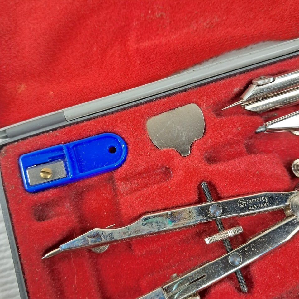 Vintage Gramercy drafting PO7 metal compass tool set kit made in Germany w/ case