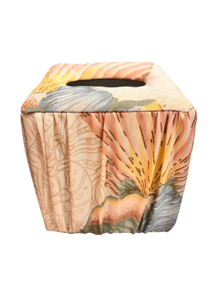 Vintage 90's classic style fabric material tissue square box cover peach floral