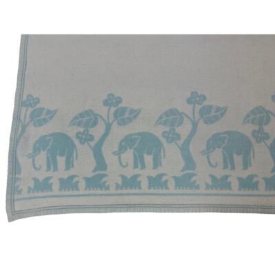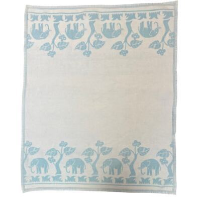 VTG Thick Blue Baby Elephants Baby Crib Blanket Cotton Flannel 1930s Reversible