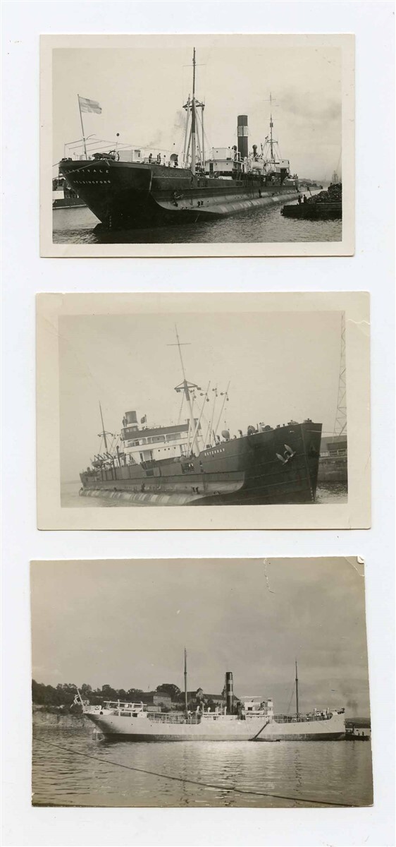 3 original vintage black and white photographs. Each measures about 3 1/2" x 2 1/2" and has information on the ship on the back. Includes the Garryvake, Kathinka and the Osterhau