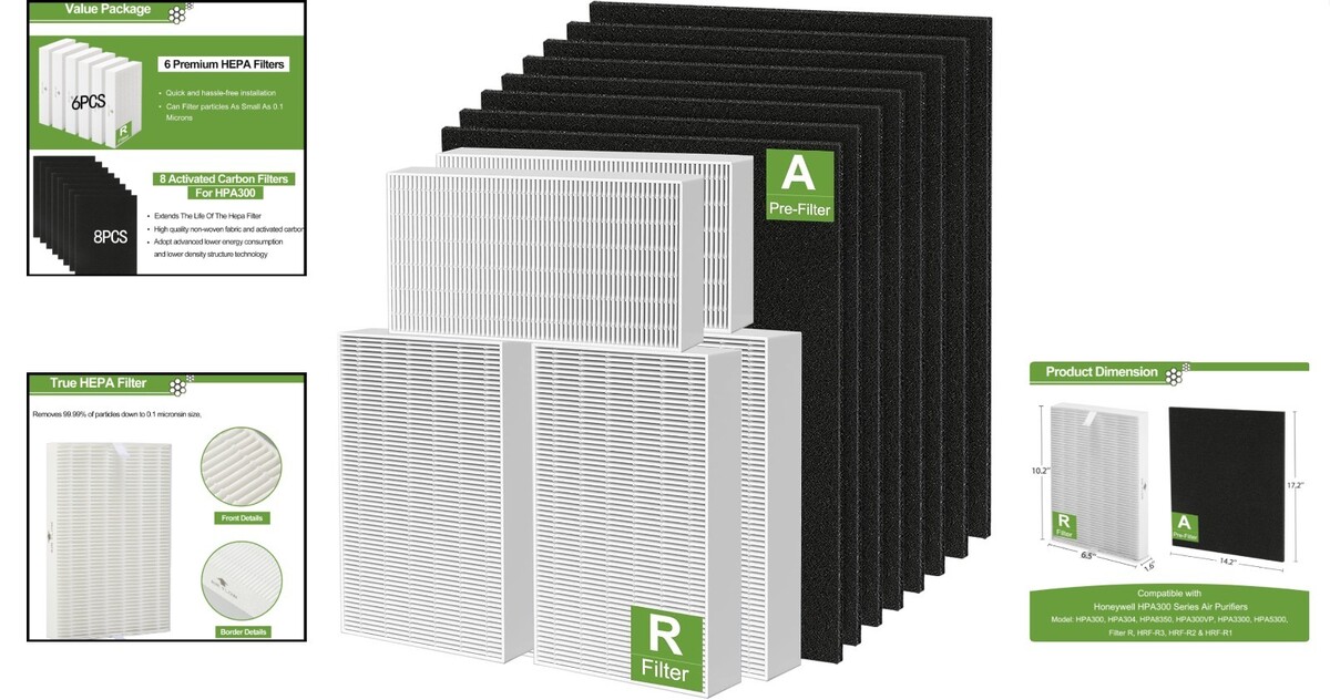 MERV 17 HEPA R Filter Pack Compatible with Honeywell Appliances - 6 & 8 Filters
