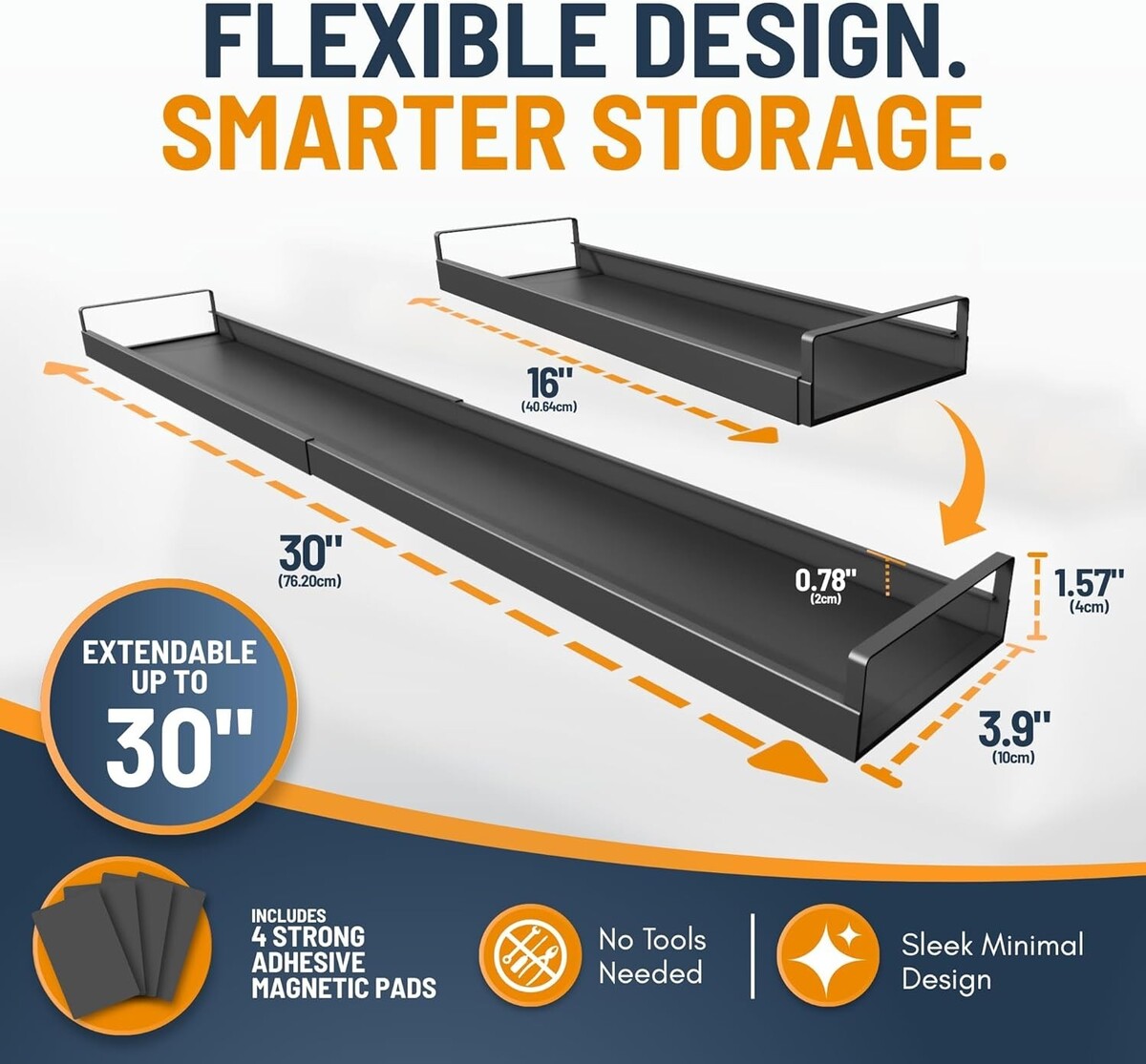 Adjustable Size: With a range of 16" to 30" in length and a 3.9" width, our shelf allows you to customize the fit for a seamless, built-in look that suits your stove perfectly.