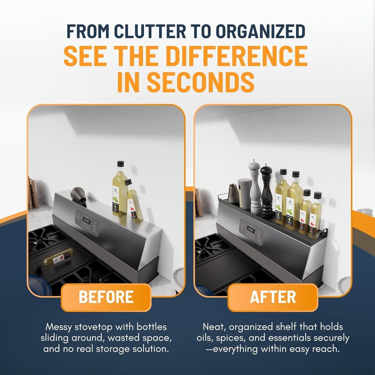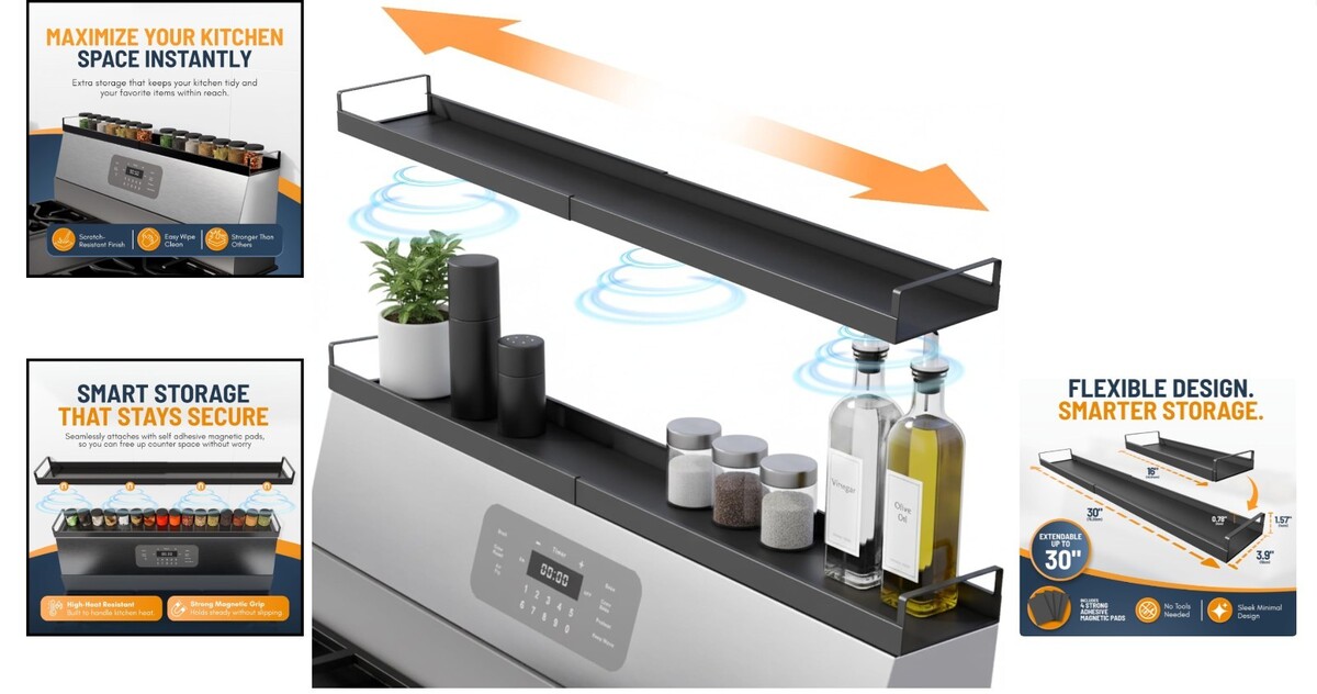 Discover the ultimate organizational solution with our extendable steel magnetic stove shelf. Transform unused space above your stove into functional and stylish storage for your cooking essentials.