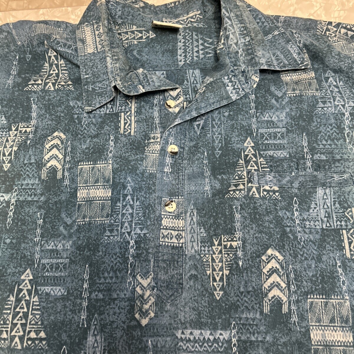 Go Barefoot Go Men's Hawaiian aloha tropical popover 100% Cotton teal blue poly