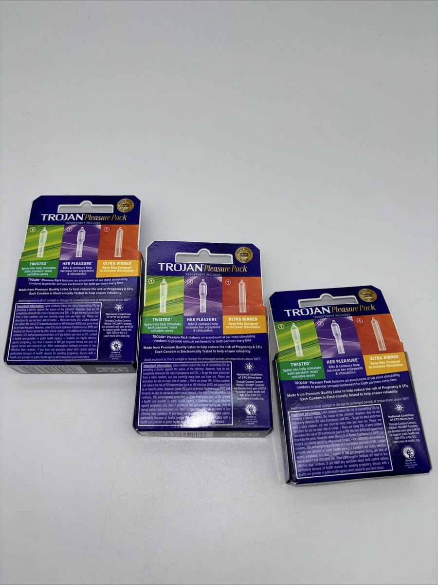 3 pack Trojan Pleasure Pack Lubricated Ribbed Latex Male Condoms 3 count