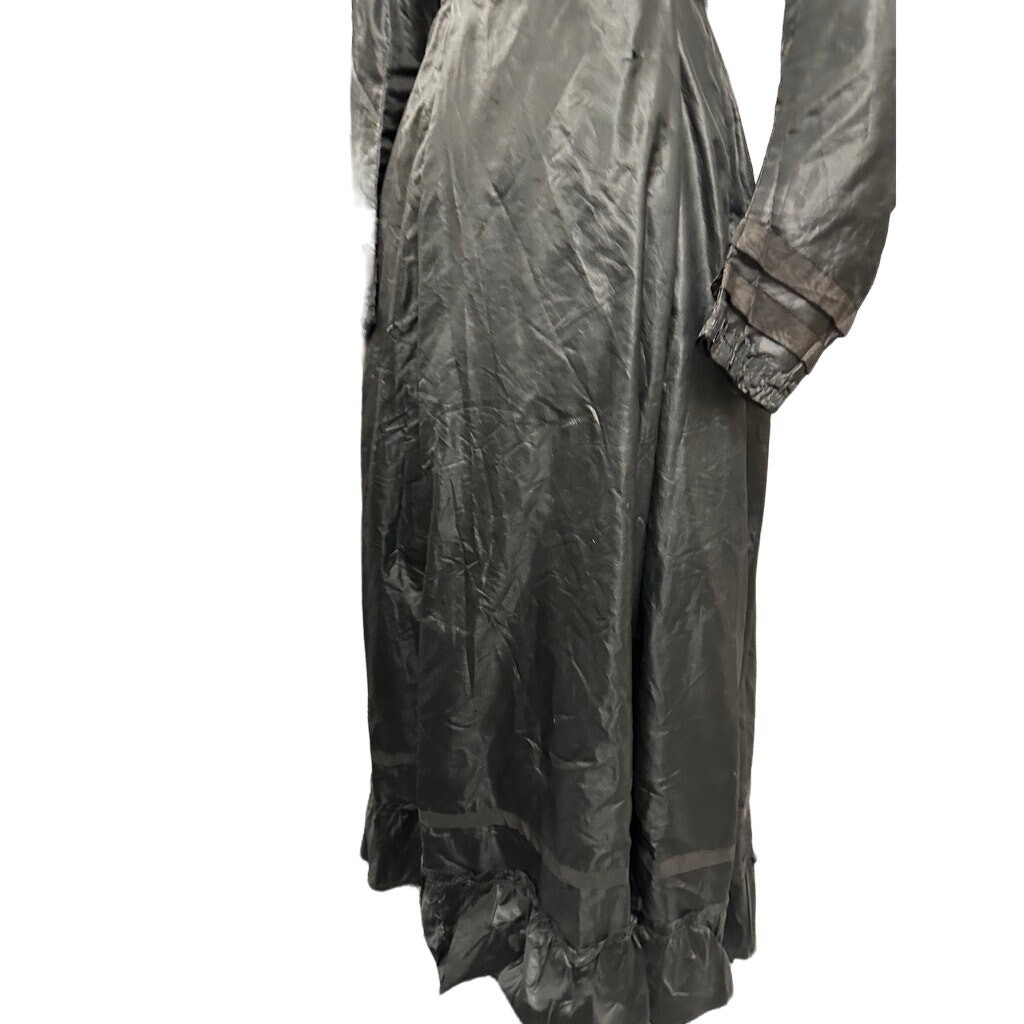 Antique 1860s 70s Civil War Era Black Silk Bustle Gown Dress Full Skirt 22” Wais