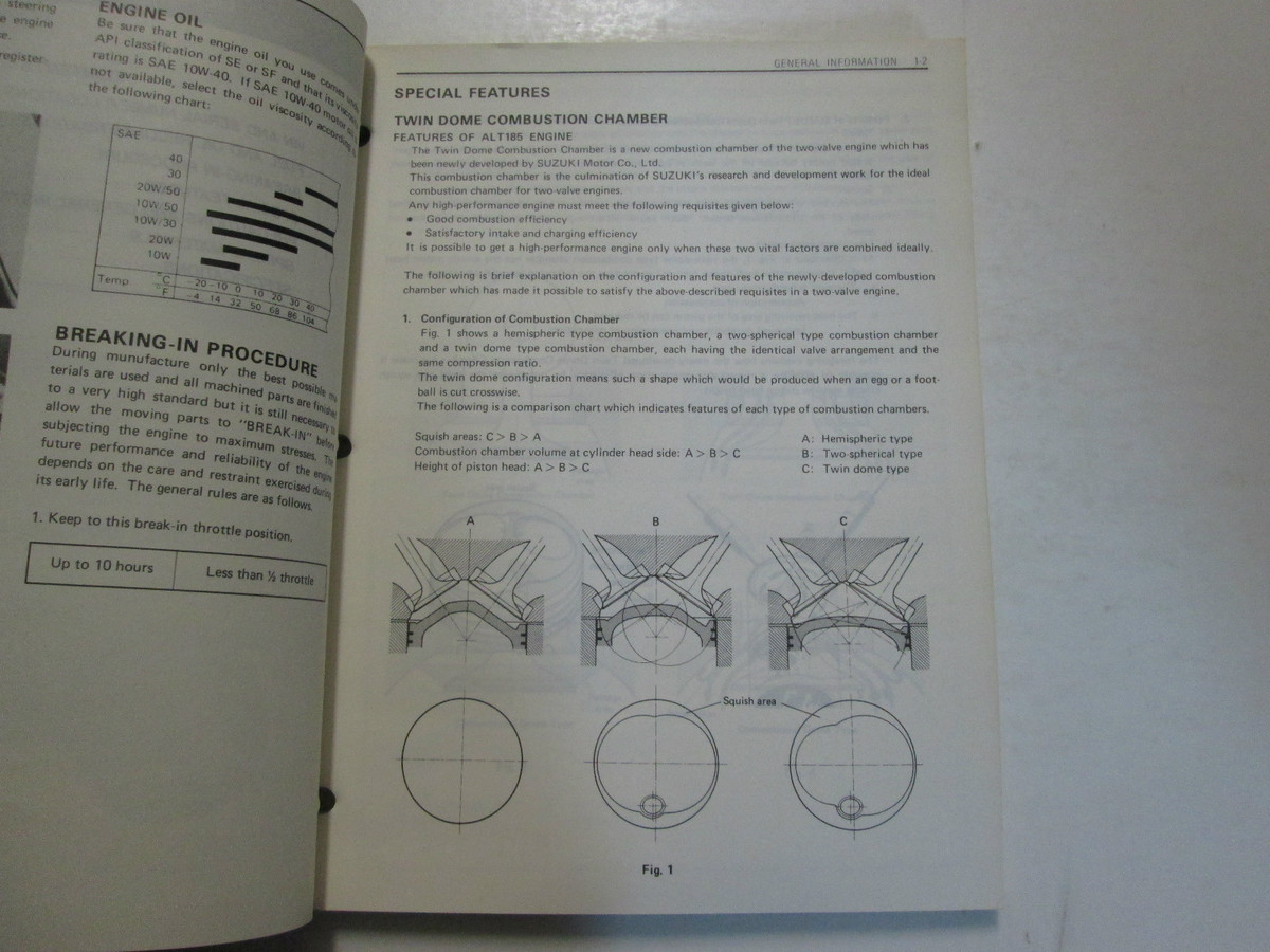 step by step instructions, assembly/dis-assembly, exploded illustrations/diagrams/troubleshooting, great manual to have when owning a ALT185 and will keep your SUZUKI on the road. This manual will save you money in repairs/service.