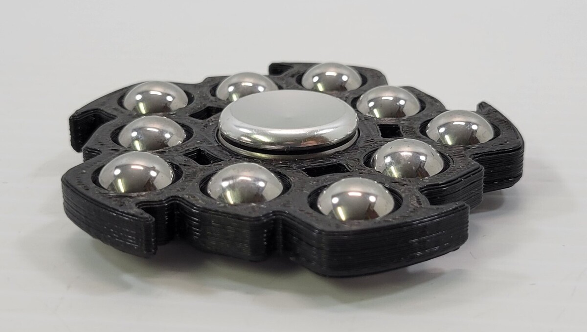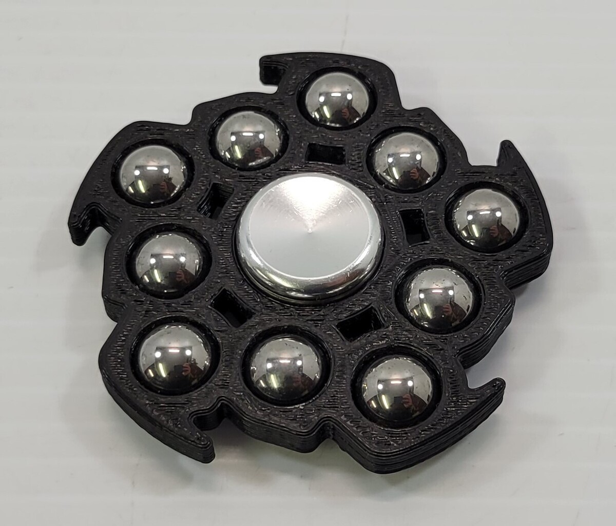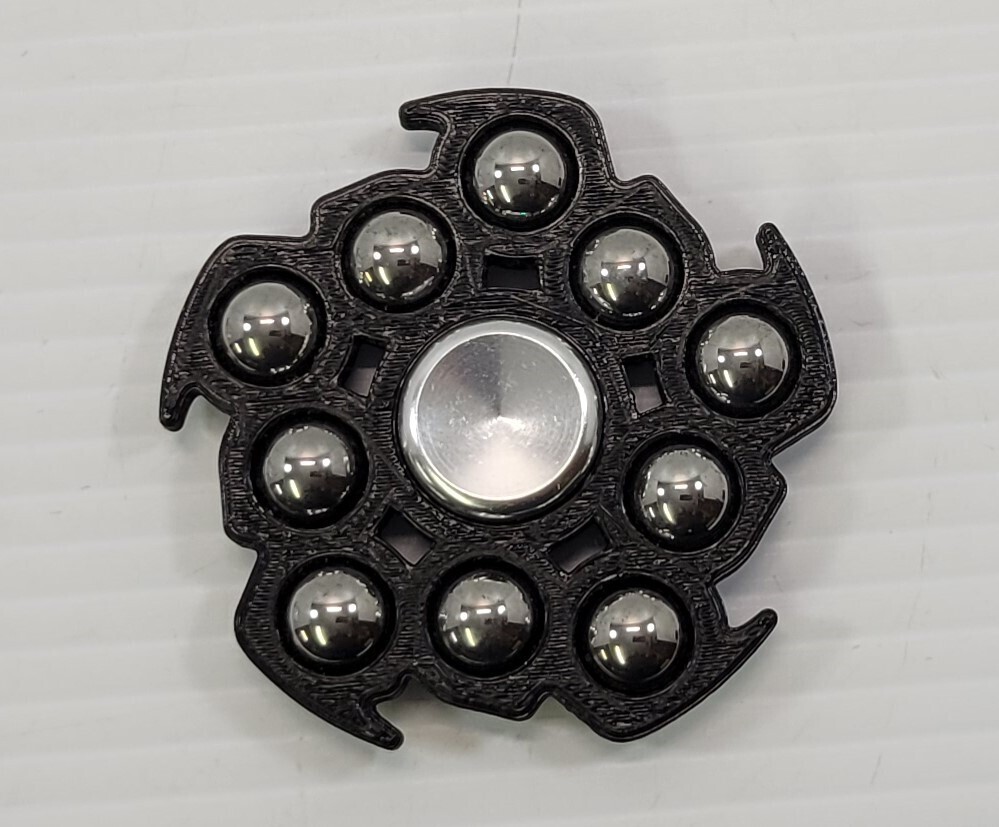 *B2) 10-Metal Ball Bearing Jagged Black Plastic Fidget Spinner