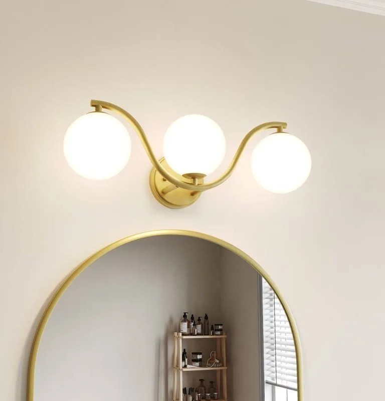 Mercer41 Reshmi Gold Seel Wavy Dimmable Vanity Light Bathroom Light