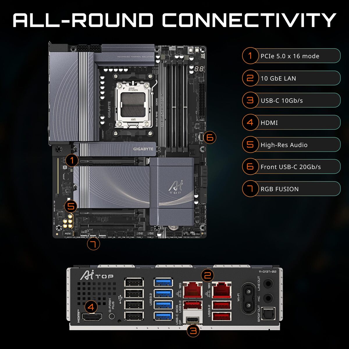 GIGABYTE B850 AI TOP AMD AM5 ATX Motherboard, Support AMD Ryzen 9000/8000/7000 S