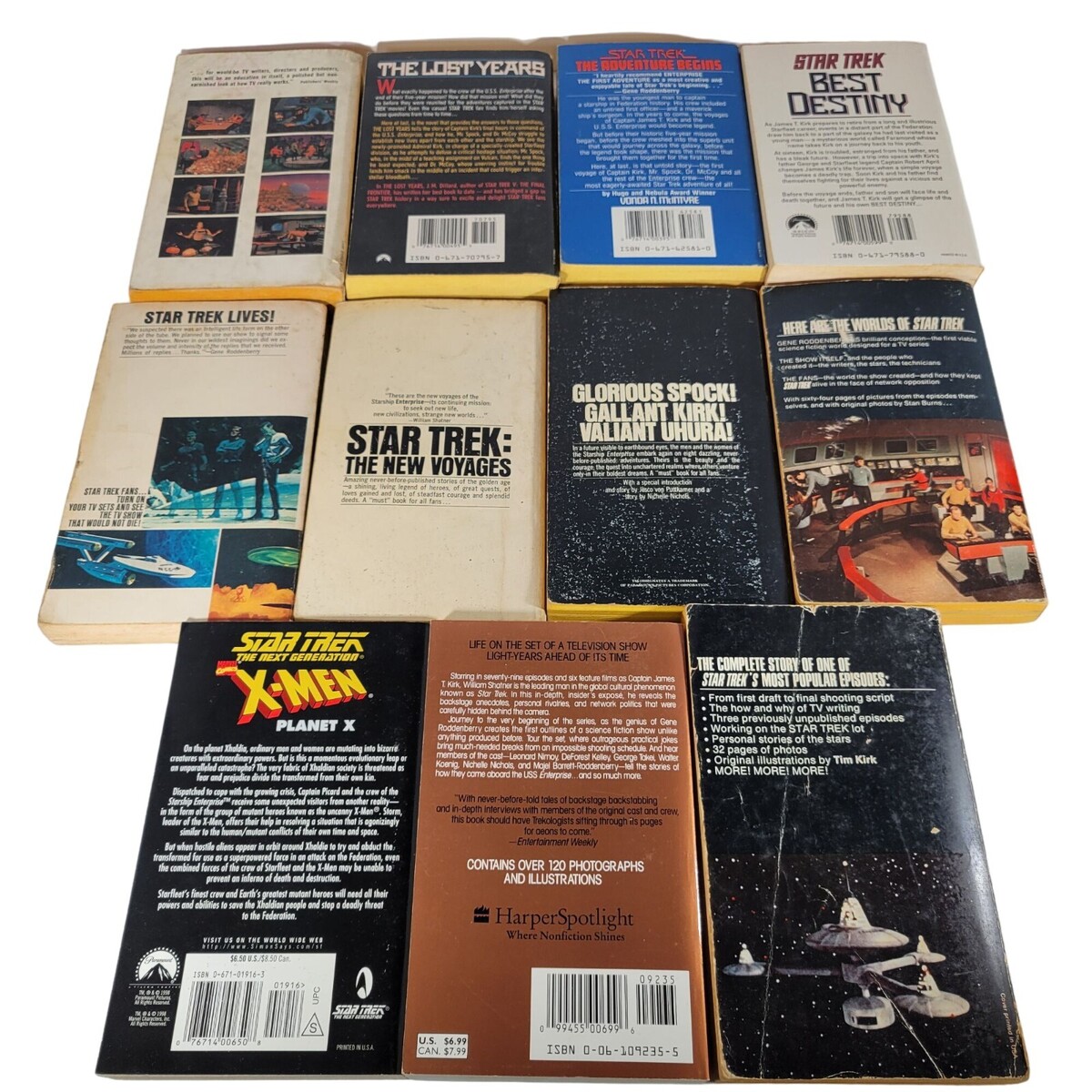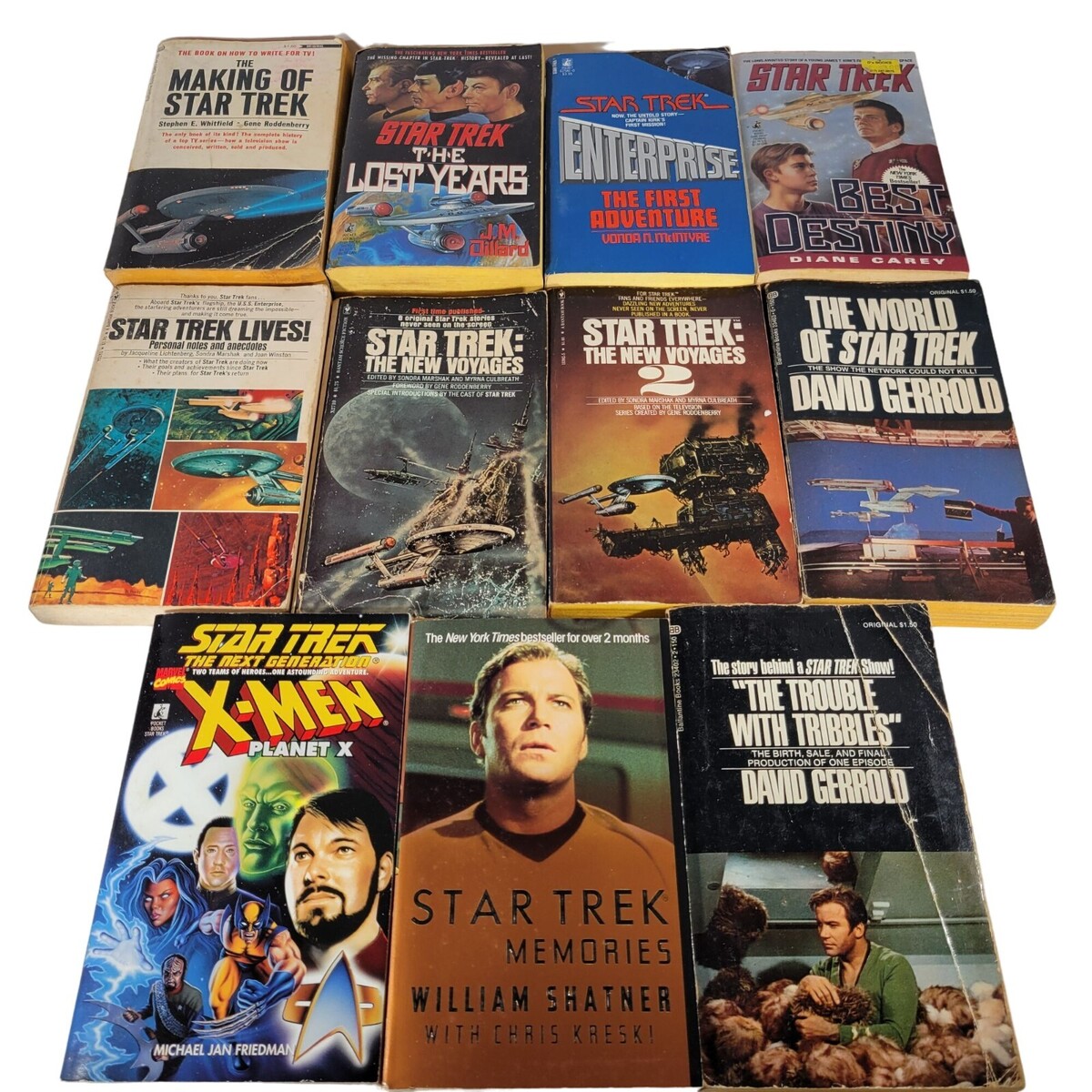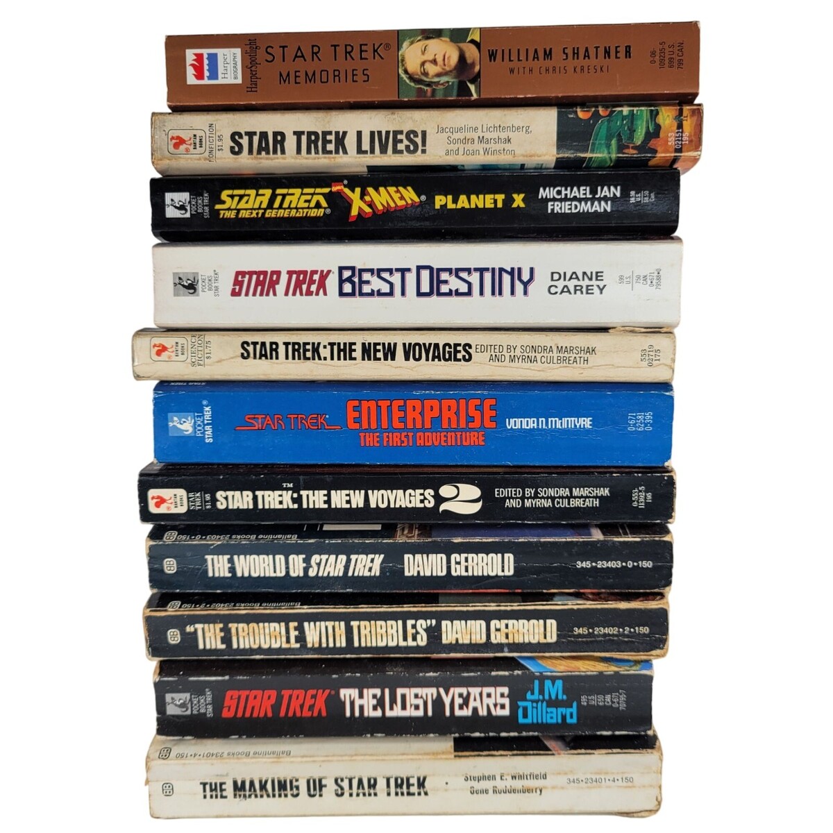 Explore the Star Trek universe with this lot of 11 vintage novels. Delve into groundbreaking adventures, memorable characters, and behind-the-scenes insights in this paperback collection.