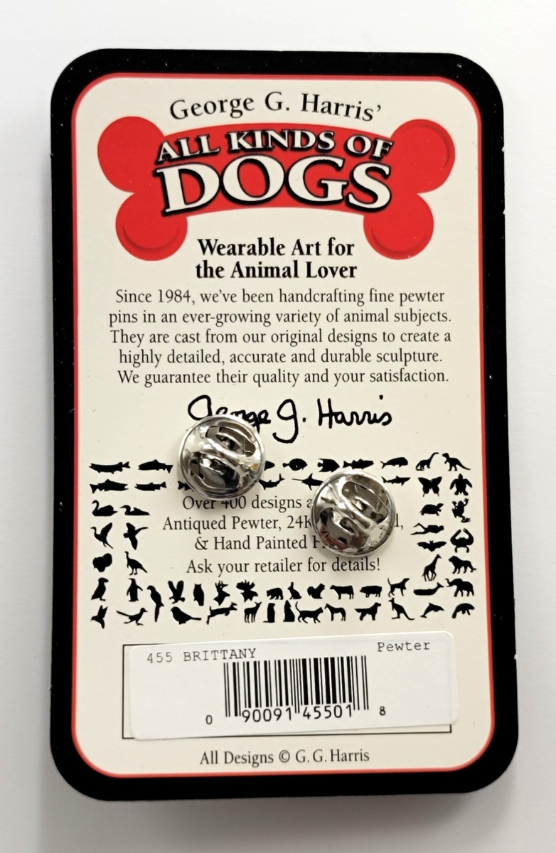 Vintage Brittany Spaniel Pewter Pin GG Harris All Kinds of Dogs USA Handcrafted