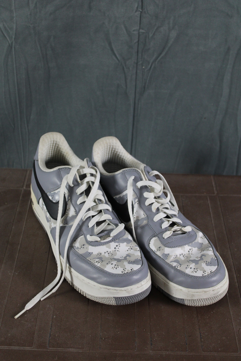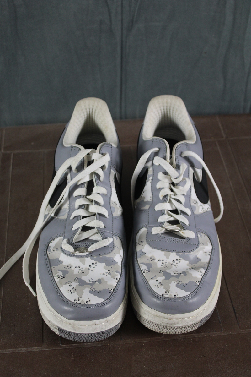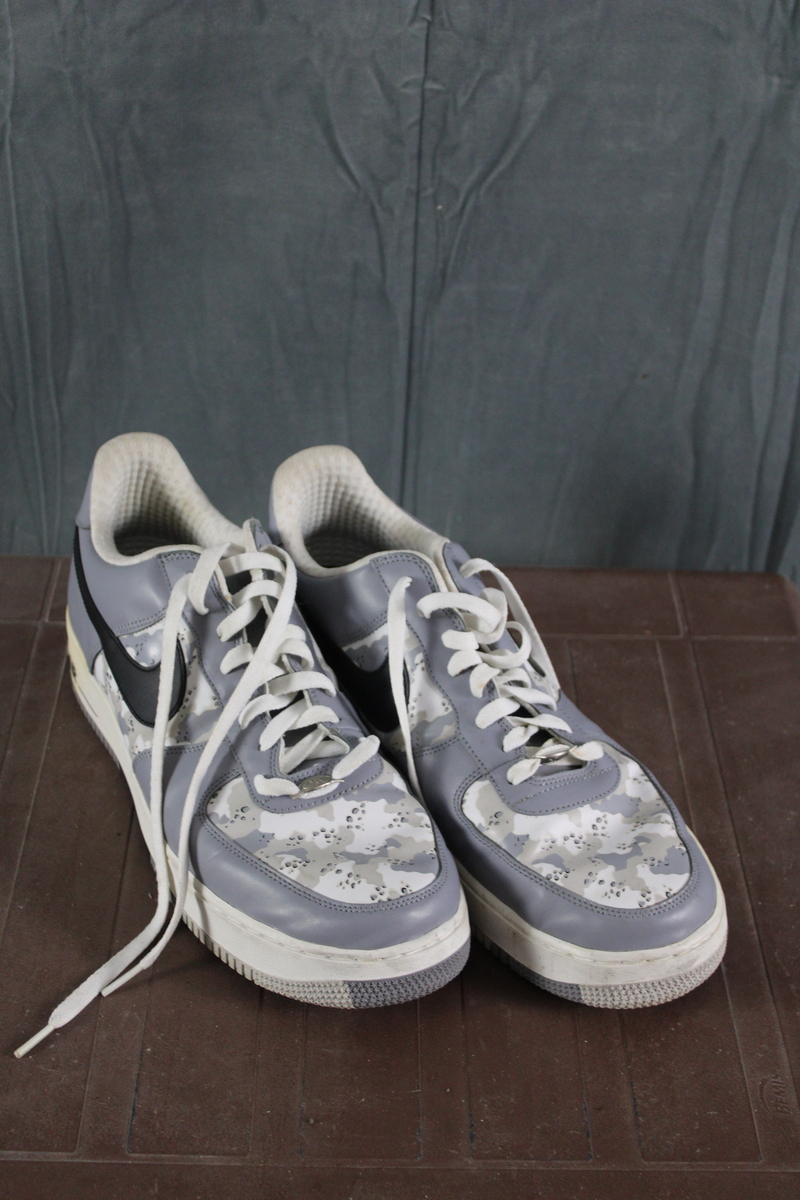 Up for sale is a pair of Nike shoes. They are winter camouflage Air Force 1s with a grey trim. What a great pair of shoes do not miss out on them.