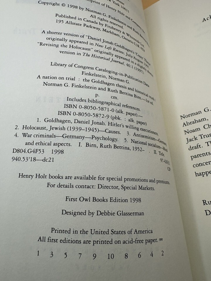 A Nation on Trial Goldhagen Thesis Finkelstein Birn SC 1998 First Edition