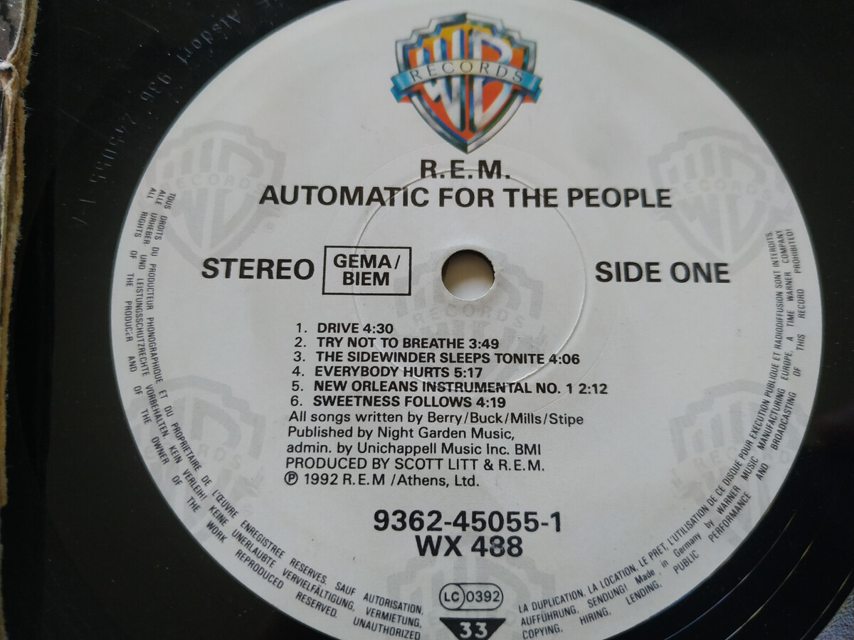 Rem Automatic for The People 1992 9362-45055-1 WX 488 LP vinyl 12 "G+/Vg T3