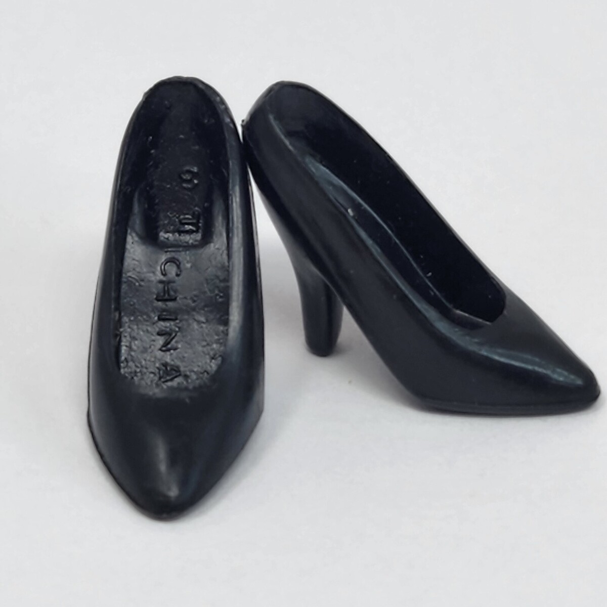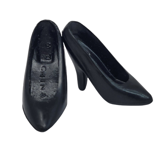 VINTAGE 1990's 80's MATTEL BARBIE BLACK CLOSED TOE HIGH HEEL HEELS PLASTIC PUMPS