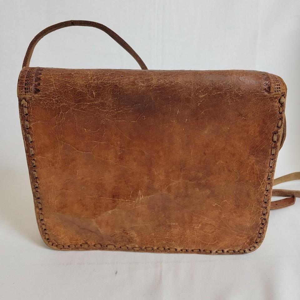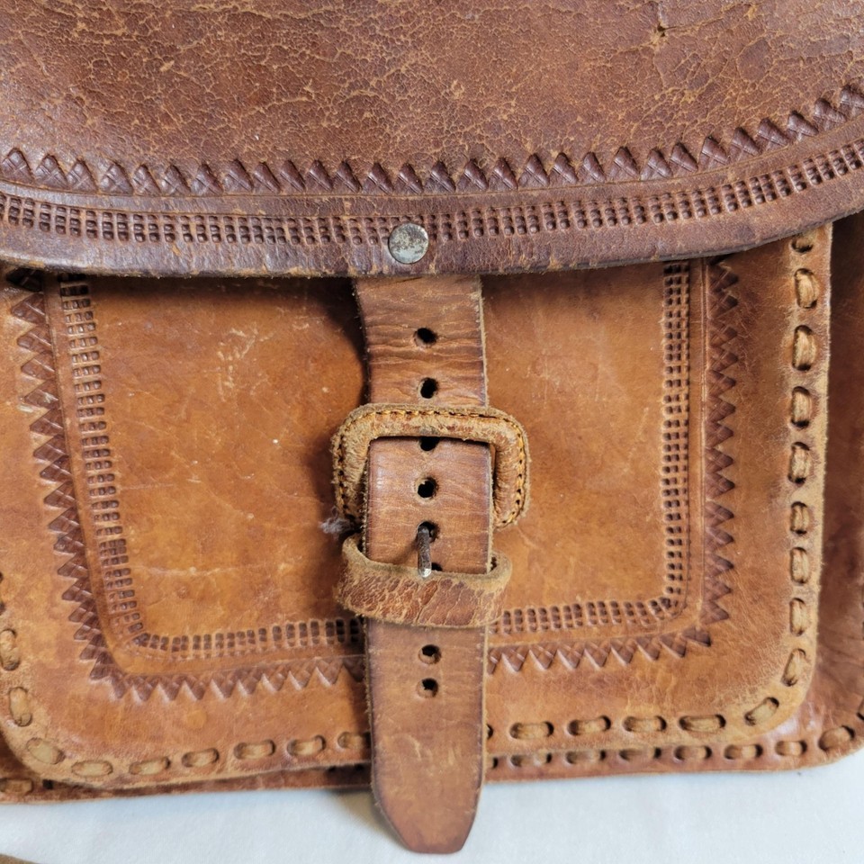 Vintage Purse Hand Tooled Leather Crossbody Bag Rustic Boho Western Distressed