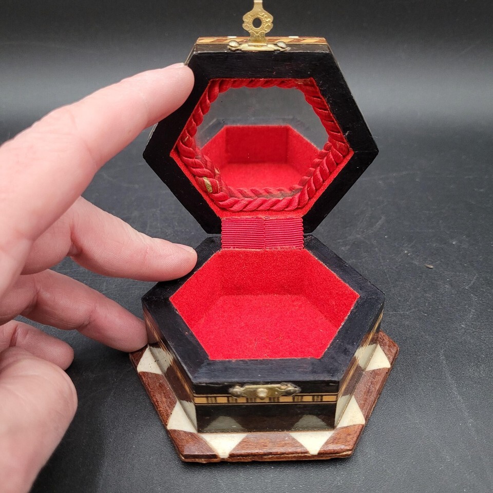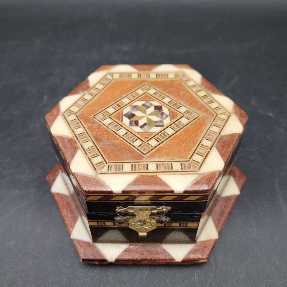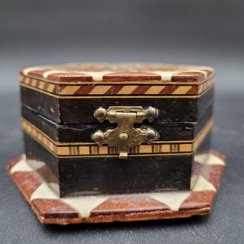 Vintage Spanish Laguna Wooden Inlay w/Mirror Earing Jewelry Vanity Trinket Box