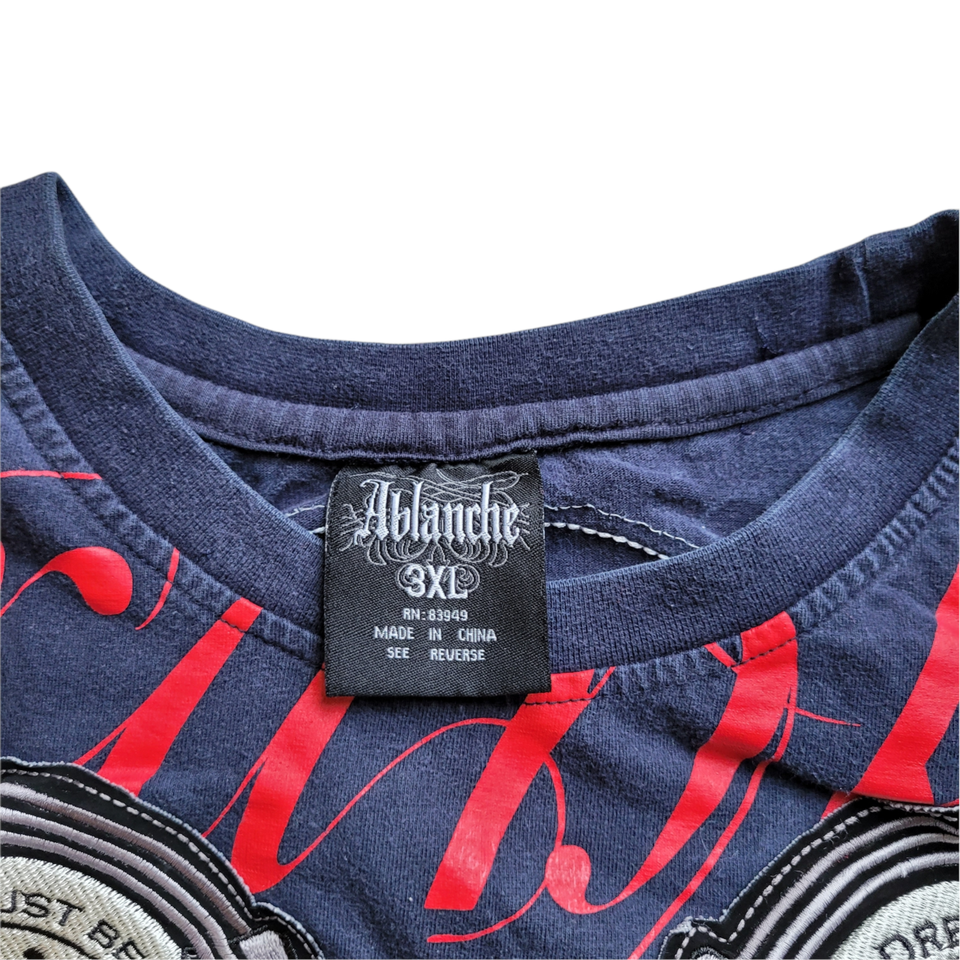 ABLANCHE Embroidered Graphic Motorcycle Tee Shirt Size 3XL RARE Blue Red Men's