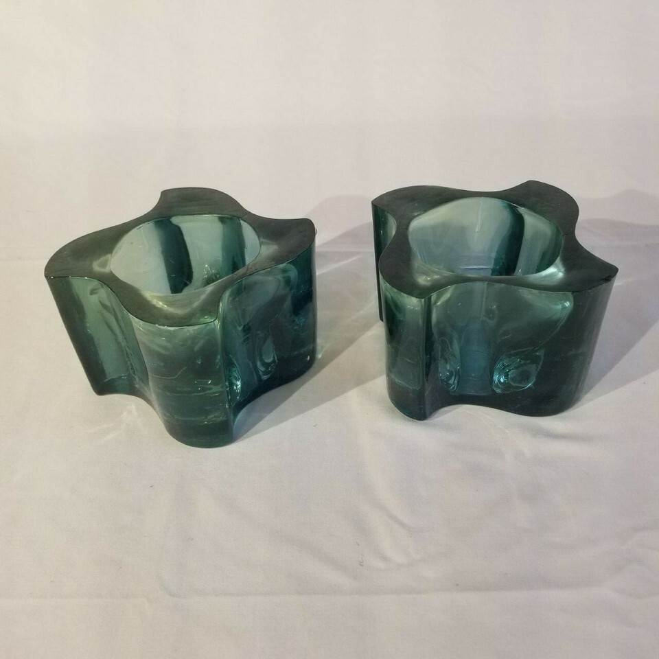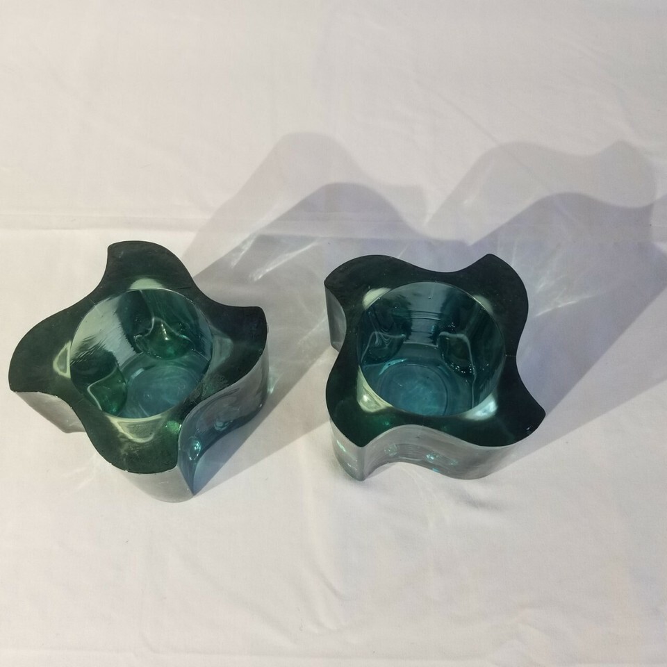 RECYCLED Glass Candle Votive Holder Deep Green Teal Larger Size Vidros?