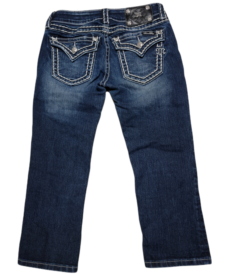 Miss Me JY5014P Capri Cropped Denim Jeans Women's Size 26 Flap Pockets Stitch