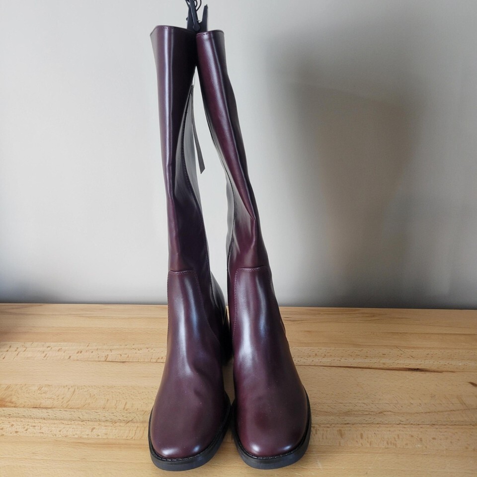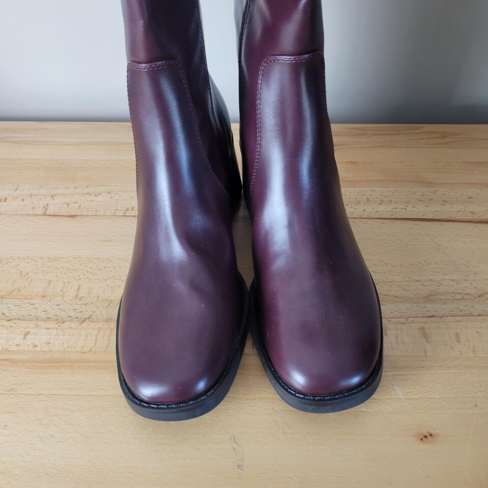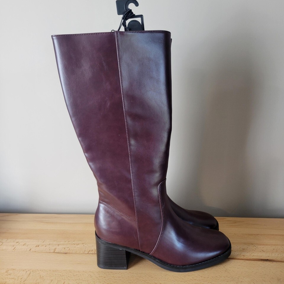 Women's No Boundaries Mid Calf Tall Block Heel Boots Burgundy Size 11 New Riding