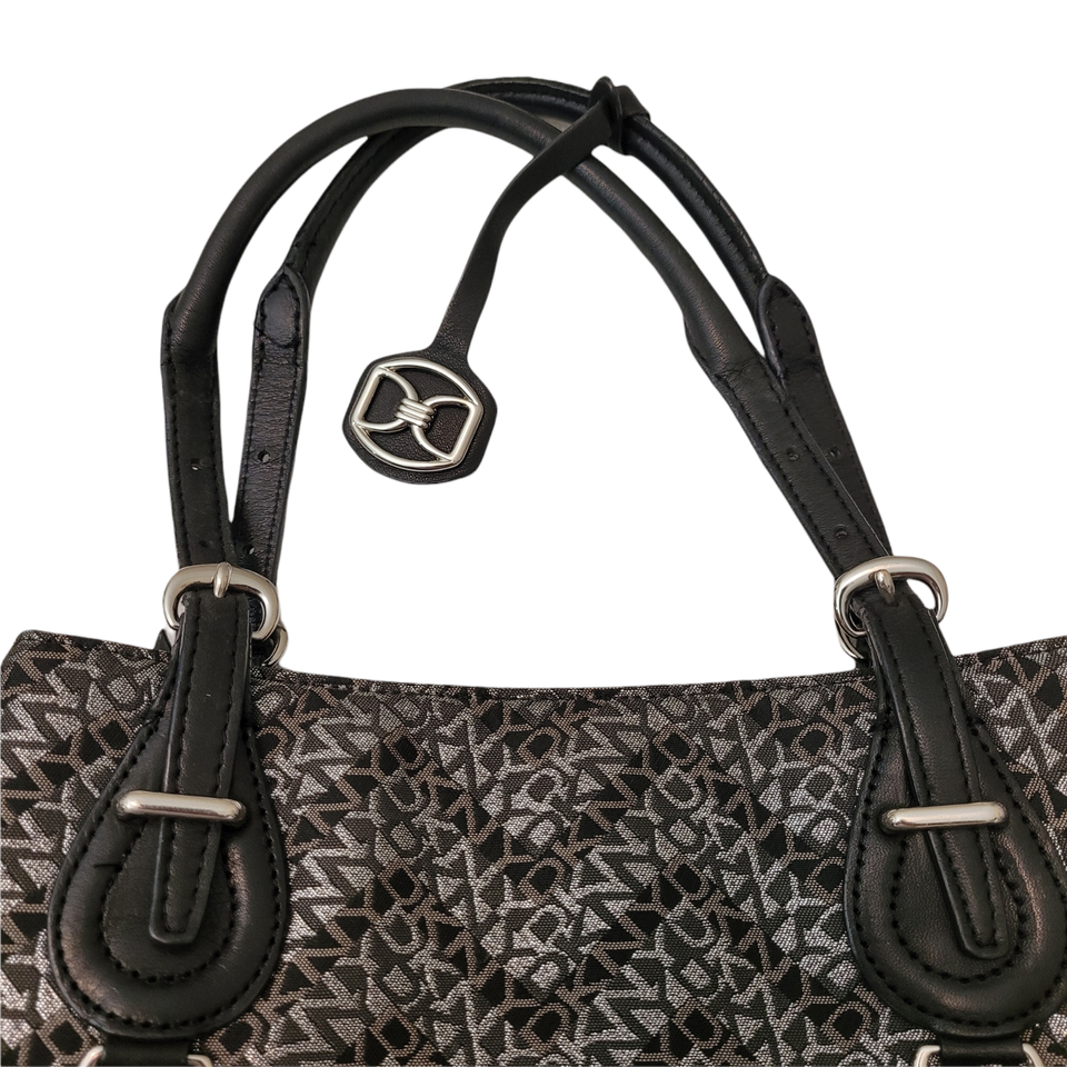 DKNY Genuine Black Stitch Leather Strap Magnetic Shoulder Tote Bag Purse 7"x10"